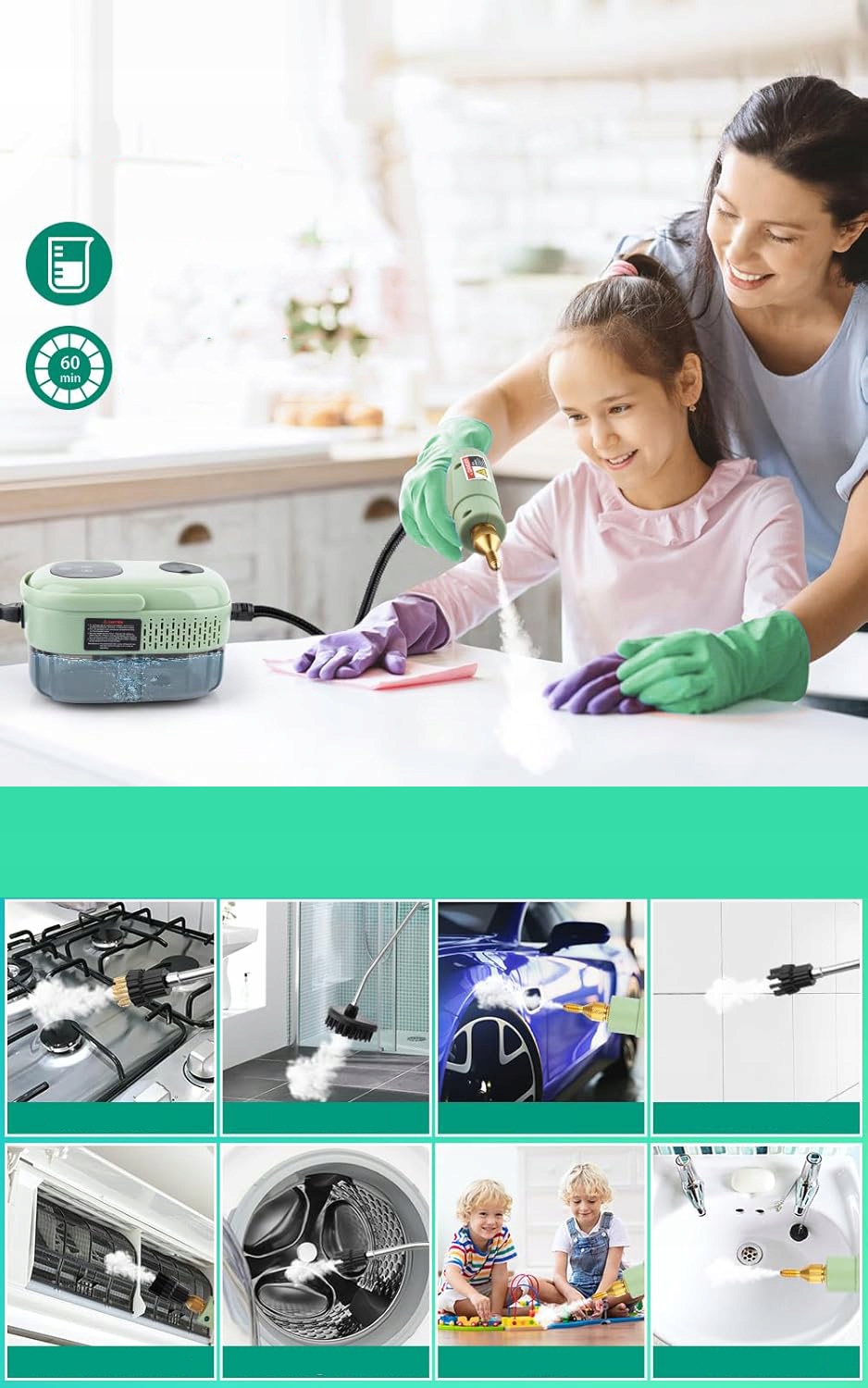 - 💧 - Эффективный вакуумный очиститель 2500 Вт может производить пар под давлением до < B> 3 бар , и температура пара достигает 105 ℃ (221 ℉) за 15 секунд, эффективно удаляя постоянную, жирную грязь и пятна. Он оборудован в большом баке с водой с емкостью 1100 мл o , когда есть потребление воды наверху и триггер внизу, что является удобным и практичным. b>-одобрено многими щетками, Большая щетка подходит для больших поверхностей, таких как стены, капюшоны и т. Д.; Стальная щетка подходит для печей, горшков, кастрюли, посудомоечных машин и других металлических поверхностей, небольшая щетка подходит для игрушек, мебели, стеклянных диванов, поверхностей плитки и т. Д.