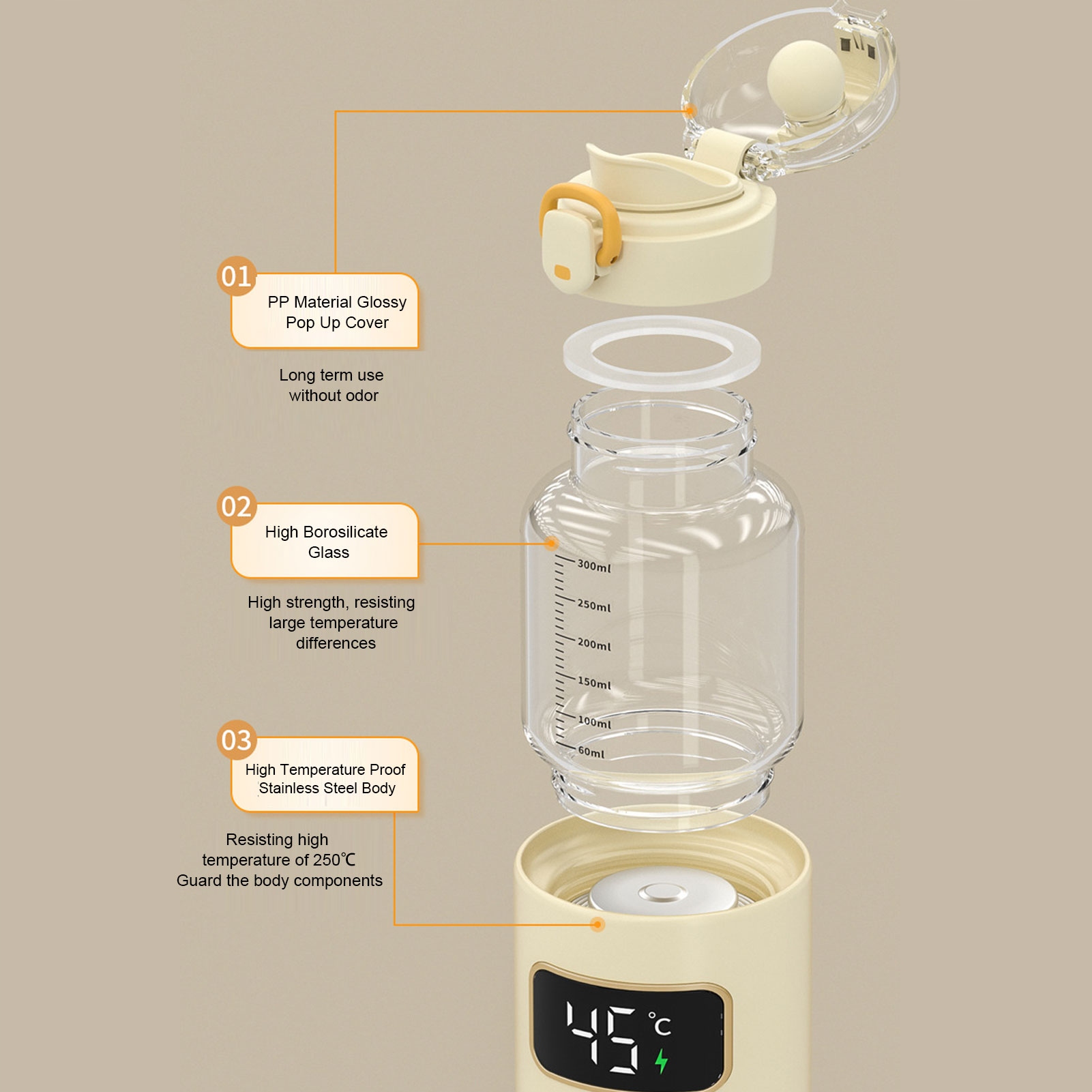 4. Универсальное использование: этот портативный подогреватель бутылочек имеет многофункциональную конструкцию, которая поддерживает различные жидкости, включая детское молоко, воду и сок.
