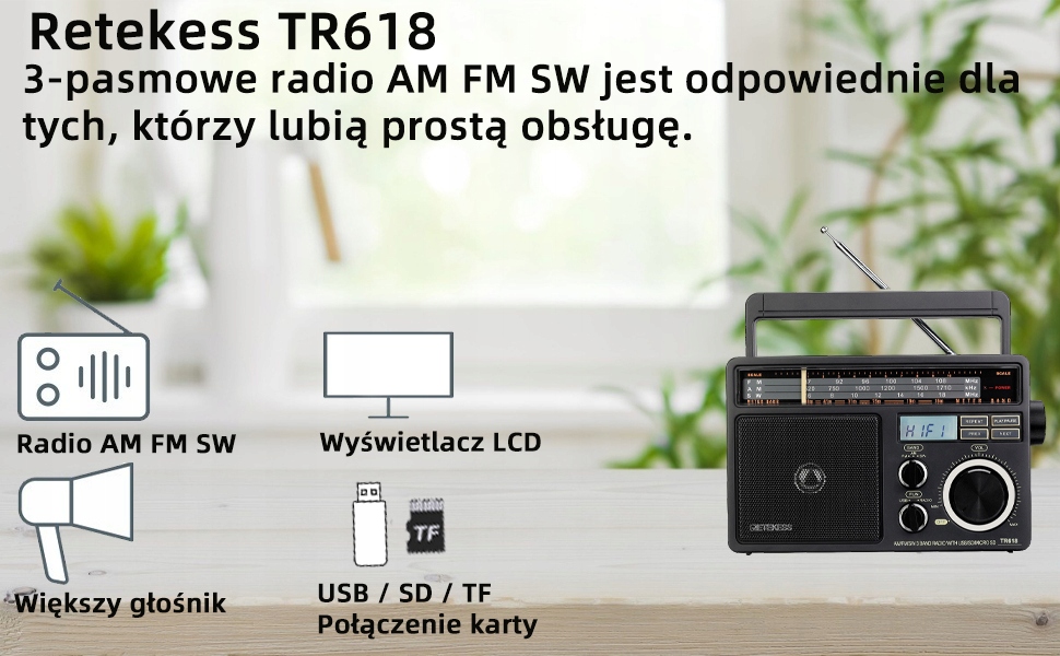 Портативное радио FM AM SW TR618 любимо пожилыми людьми. Идеально подходит в качестве подарка родителям, бабушкам и дедушкам, а также пожилым людям.