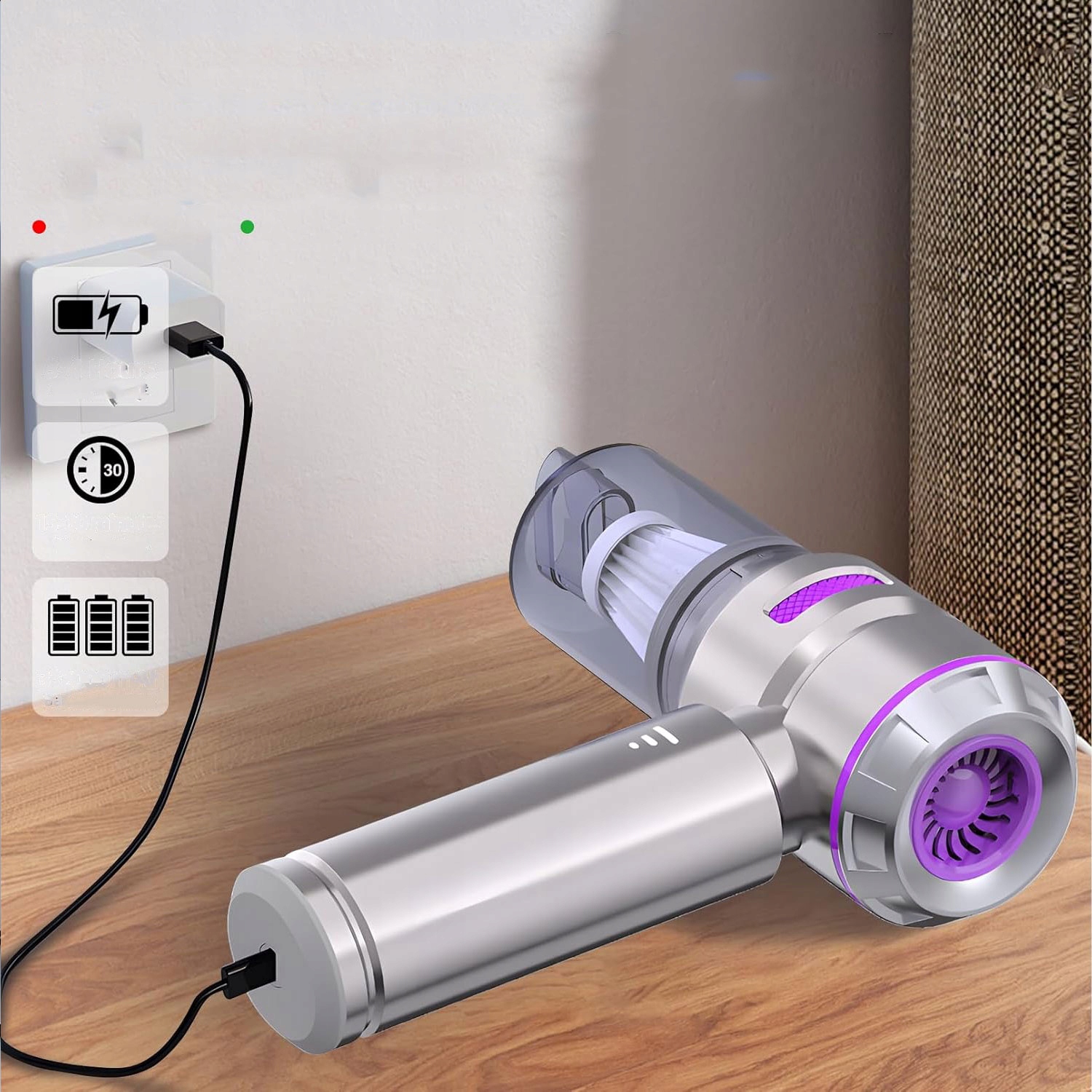 🟢🟢【 Бесщеточный автомобильный вакуумный очиститель 22000pa】 Этот беспроводной автомобильный вакуумный очиститель оснащен улучшенным двигателем с высокой скоростью, обеспечивая всасывание 22000pa. Он легко удаляет волосы животных, загрязнение, пыль и песок, скрытые на автокреслах или обивке. Чтобы активировать, нажмите и удерживайте в течение 3 секунд. Одно короткое пресс вызывает переключение на следующую скорость.