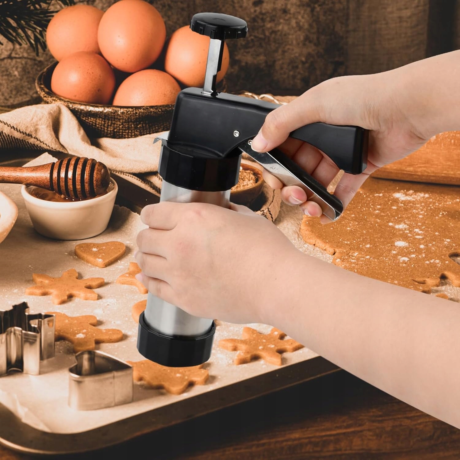 🎂 Универсальная коллекция: Пресс для выпечки включает в себя 8 насадок из нержавеющей стали и 13 алюминиевых формочек для печенья.