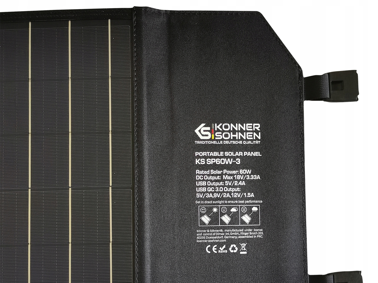 Портативная солнечная панель ks sp60w-3 немецкого бренда Könner & Söhnen станет помощником зарядных устройств во время активного отдыха, долгого путешествия и во всех случаях использования в районе солнечного света. Это солнечное зарядное устройство подходит для зарядки мобильных телефонов, планшетов, GPS, Power Banks и других устройств . Высококачественные монокристаллические солнечные элементы кремния обеспечивают высокое соотношение энергии света, превращающегося в электричество и длительный срок службы. Легкая зарядка неограниченных устройств, чистая и бесплатная солнечная энергия.