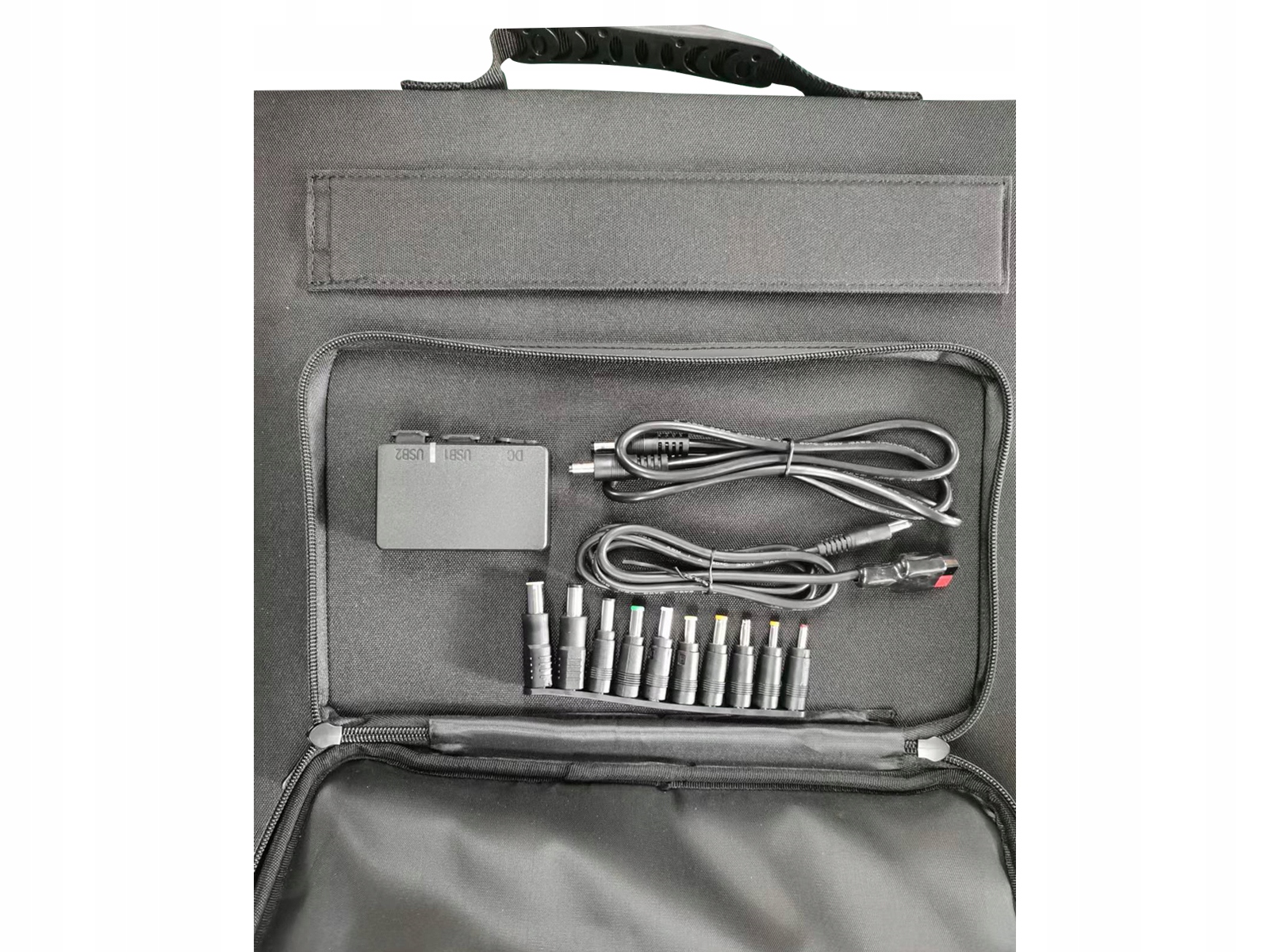 Чрезвычайно компактная, складная конструкция, легко переносить в одной руке. Легко в использовании: сложенные и скрытые в легкой сумке с креплением крепления Fastex, легко носить с ручкой. Устройства, которые следует заряжать, могут быть легко помещены в карман на молнии, что делает их безопасными и чистыми. Возможность работать в частично распределенном состоянии позволяет использовать панель в ограниченном пространстве или в движении. Блоки содержат дополнительные стойки для удобного размещения в распределенной форме.
