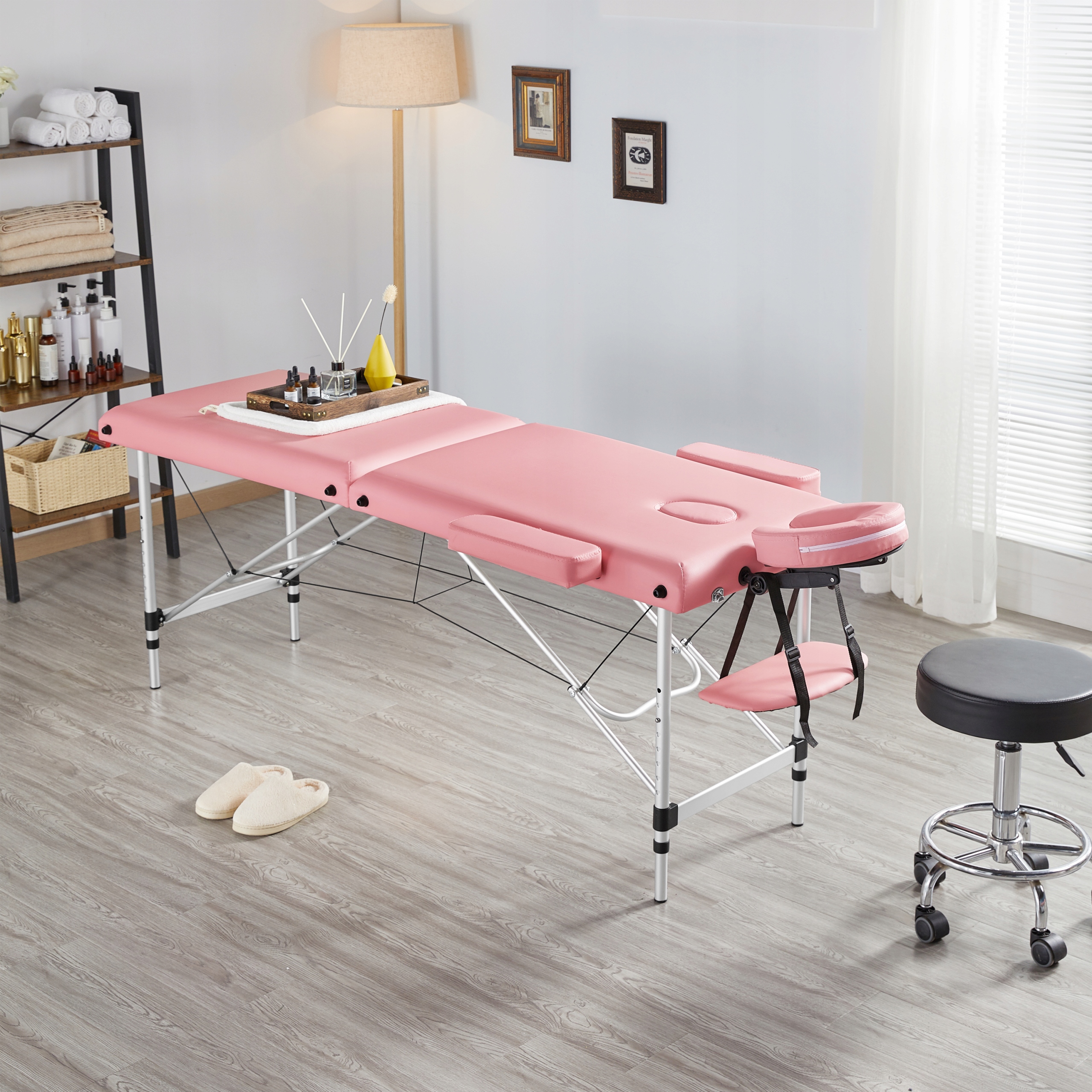 Yaheetech Portable регулируемый складной массажный стол, 213x80см, розовый