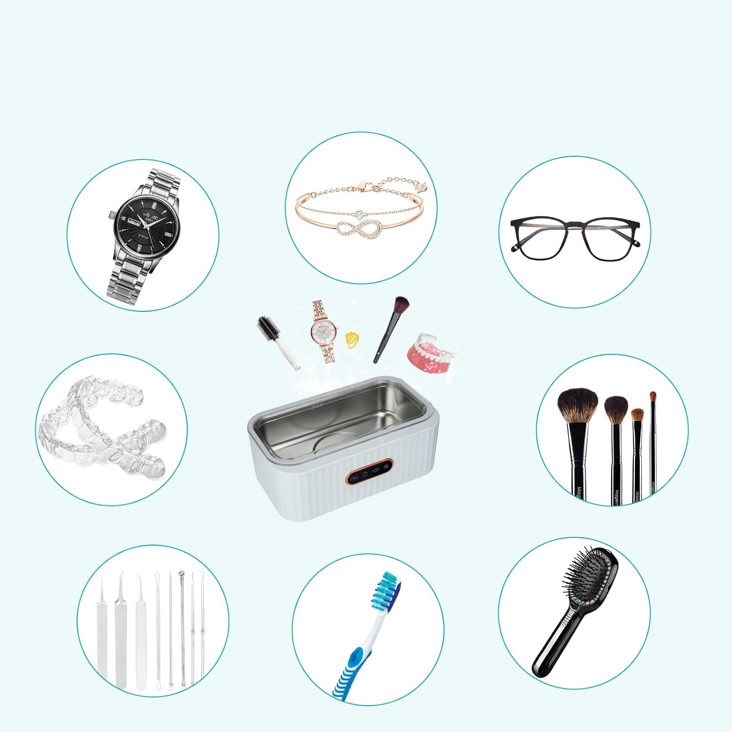 ✅ Специальная очистка w 360: Ультразвуковое поднос составляет до 400 мл, что может удовлетворить ежедневные потребности в очистке. Очки, протезы, головы бритвы, ювелирные изделия и другие могут быть полностью погружены для тщательной очистки.