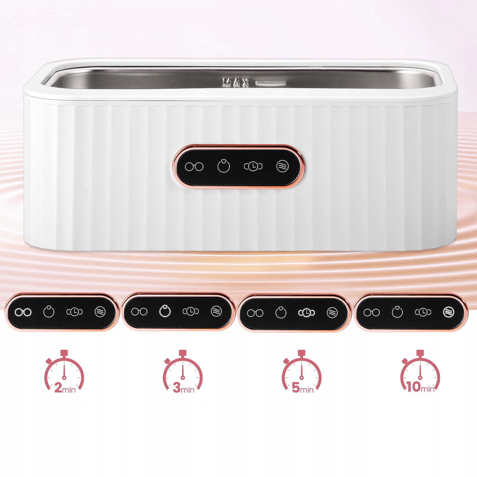 ✅ напротив одной кнопки: ультразвуковой поднос очень прост в использовании. Просто налейте воду в устройство. Затем введите в него чистящие элементы. Наконец, одного щелчка достаточно, чтобы выбрать желаемую передачу и дождаться завершения чистки.