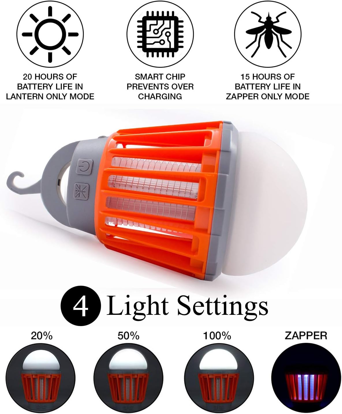 Это устройство 2-в-1, которое можно использовать как средство от комаров и как фонарь для освещения. Выдвижной крючок и съемный абажур. Фонарь Zapper эффективно убивает комаров и других кусающих насекомых физическим методом, который намного чище и безопаснее, чем его химические аналоги.
