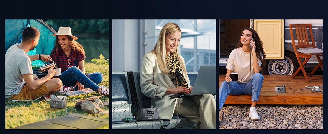 🏕 Кемпинг на открытом воздухе — в сочетании с солнечными батареями для получения чистого и бесшумного источника энергии на природе.