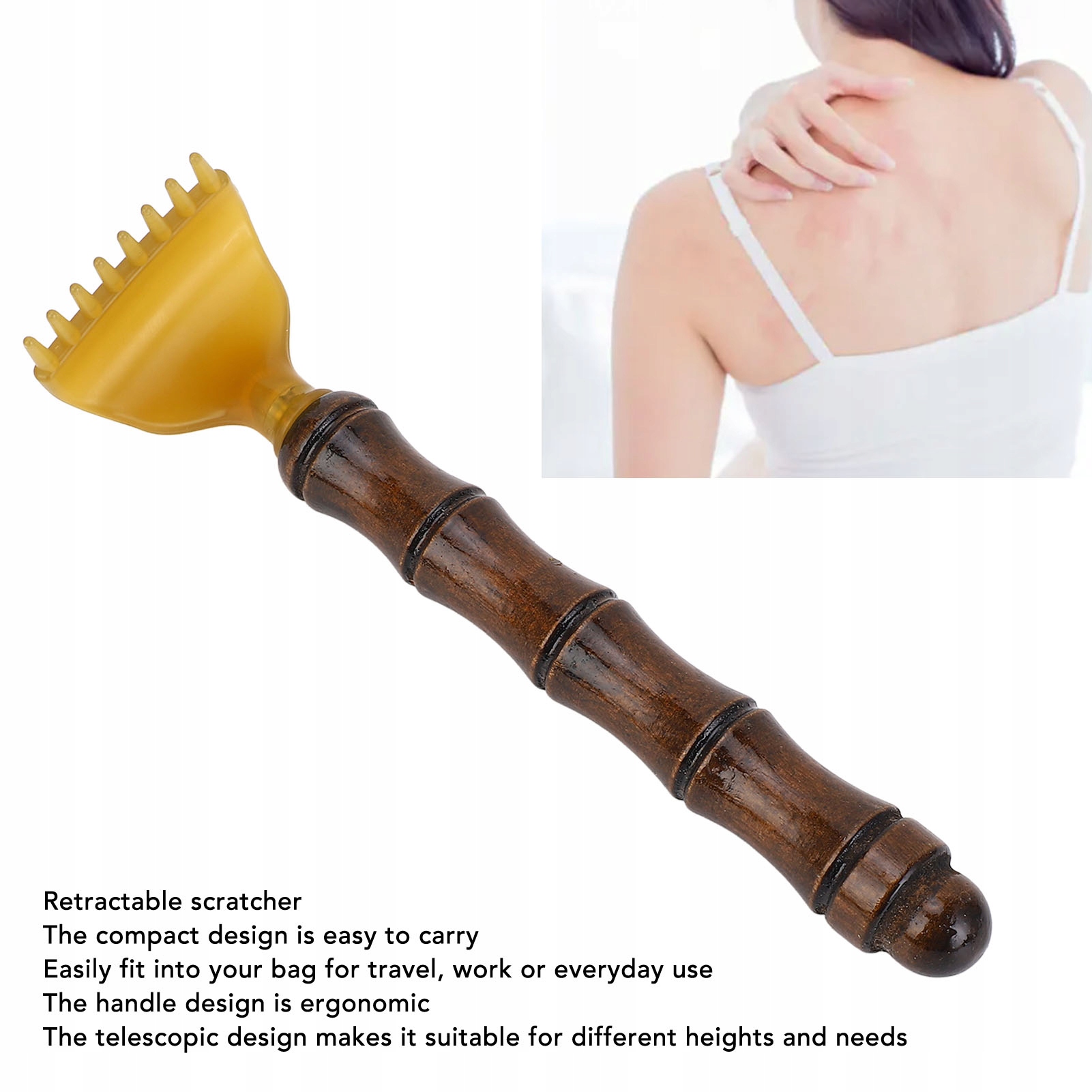 1. Компактный зуд скретч: телескопический скребок имеет небольшую и портативную конструкцию, которая делает его чрезвычайно подходящим для ношения. Независимо от того, путешествуете ли вы, на работе или просто используете его каждый день, вы можете положить его в сумку в сумке. Эргономичная дизайн ручки: наша ручка царапины была тщательно разработана для эргономичных принципов. Это обеспечивает удобную адгезию, позволяя использовать использование во время сеанса царапины. Телескопическая функциональность: его конструкция лерокона позволяет наметить различные высоты и личные требования. Независимо от того, пытаетесь ли вы добраться до спины или в других областях. Деревянная вещество: изготовленная из высококачественной древесины, эта царапина - продолжительность с эстетическим очарованием. Сплошная конструкция гарантирует, что она построена для продолжительности, подходящей для Ductrifice. Комплексное использование: этот план полезен для личного использования, но также и подходит для семьи и друзей. Его универсальность делает его подходящим для всех, обеспечивая немедленное комфорт в случае необходимости