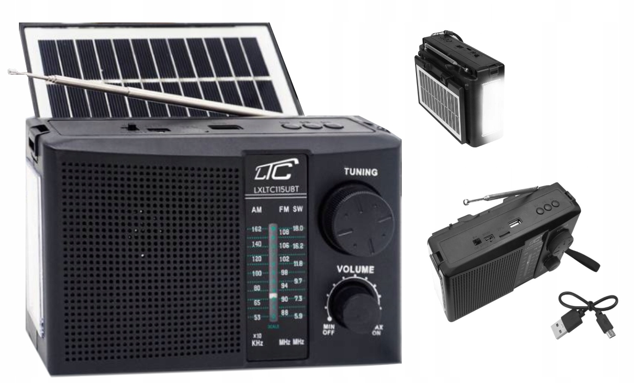Портативная радиостанция NER с солнечной панелью, черная LTC115UBT FM/AM/SW USB Bluetooth