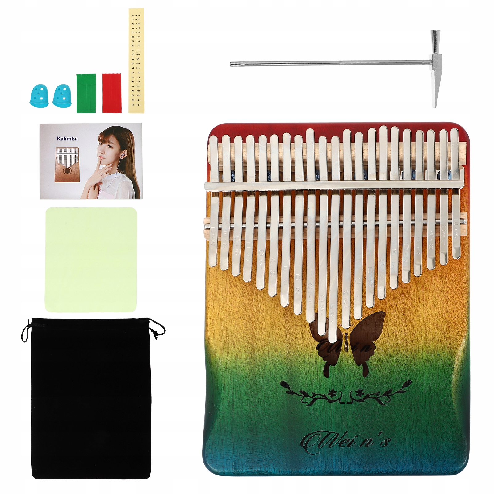 21 клавиша Kalimba Thumb Piano изготовлена из натурального дерева и железа, высокая прочность и долговечность обеспечивают плавность игры.