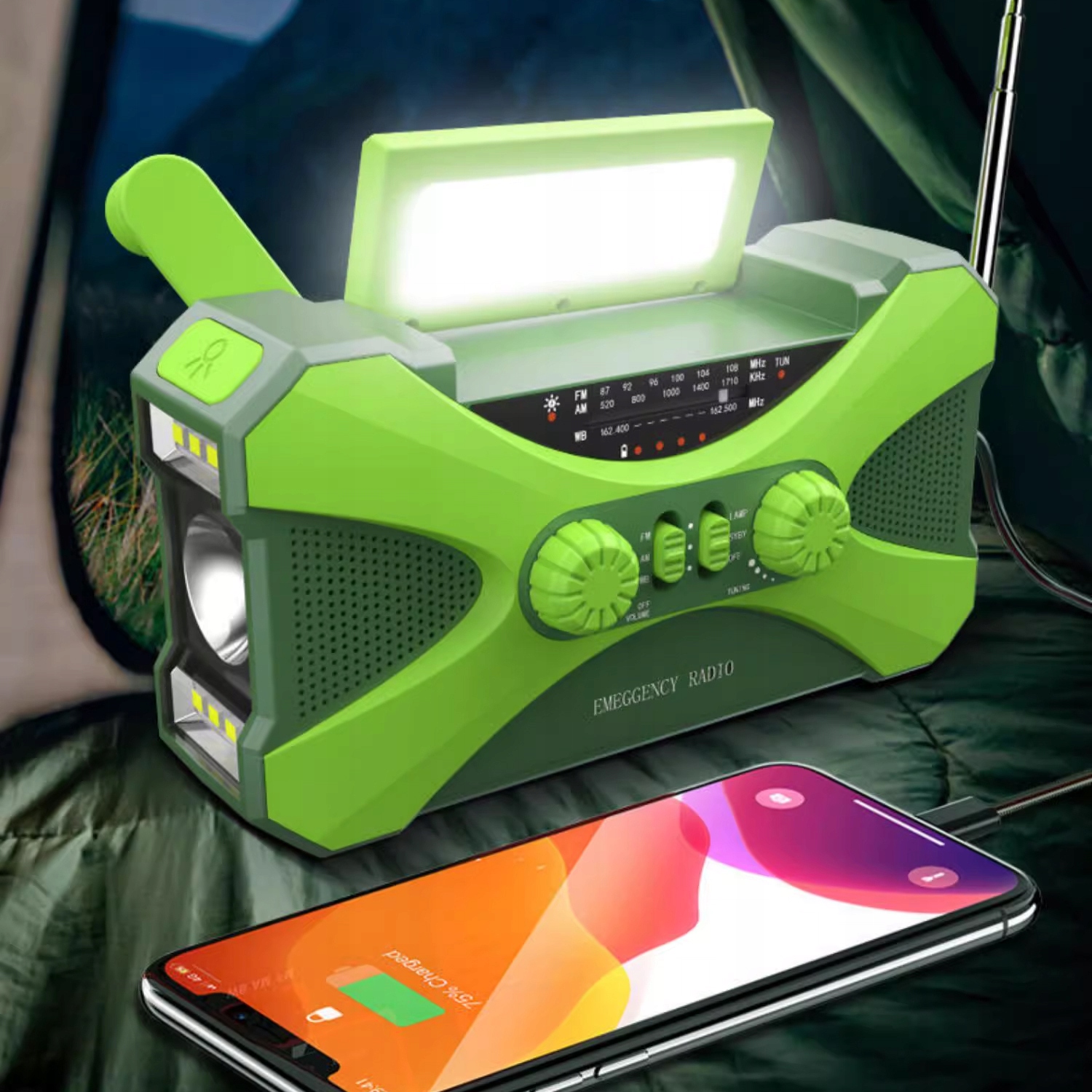 Радиоприемник с рукояткой, 3-режимным фонариком и лампой для чтения — идеальный выбор для любителей природы или людей, которым необходимо ориентироваться в темных местах. Это портативная аварийная радиостанция на случай отключения электроэнергии дома или практичный автономный инструмент выживания, который можно использовать во всех ваших путешествиях, таких как кемпинг, походы и т. д.