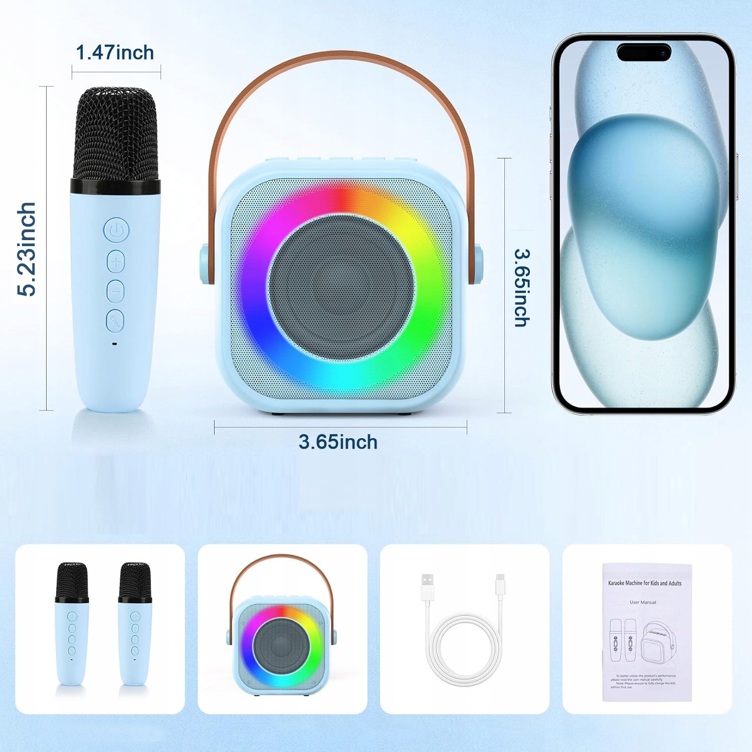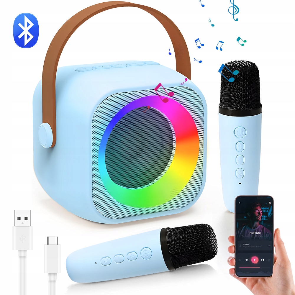 ПОРТАТИВНОЕ КАРАОКЕ С СИНИМ СВЕТОМ И ДВУМЯ МИКРОФОНАМИ