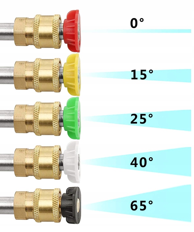 Пистолет высокого давления с 1/4 "быстрого разъема с соплами 0 градусов (красный), 15 градусов (желтый), 25 градусов (зеленый), 40 градусов (красный), 15 градусов (желтый), 25 градусов (зеленый белый)