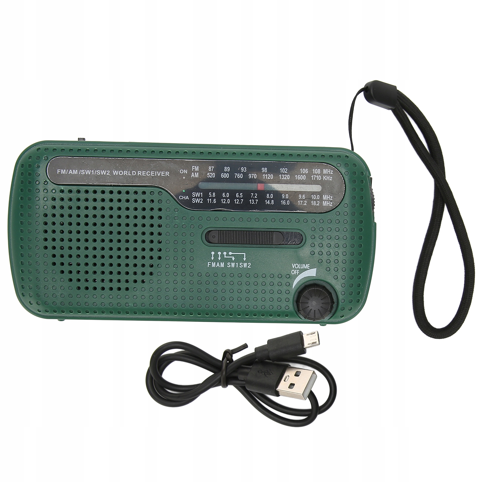 1 солнечное радио (батарейный отсек не включает батареи) 1 USB-кабель;