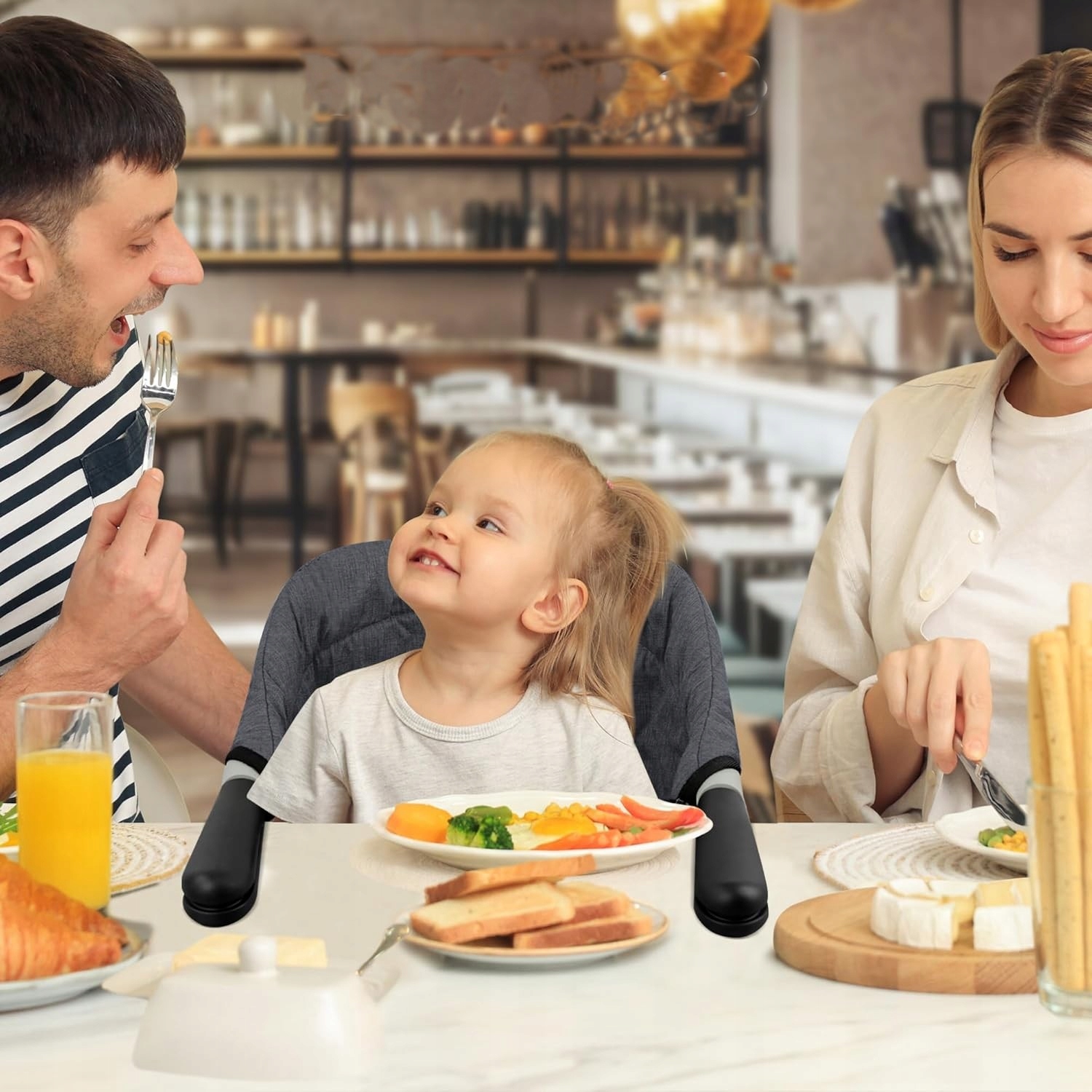 - Мягкие, не -скользящие поручни: поручни изготовлены из мягкого, не -скользящего пластика для защиты таблиц от царапин. Точные модульные детали гарантируют, что кресло для кормления ребенка можно легко затянуть и твердо прикреплено к столешнице.