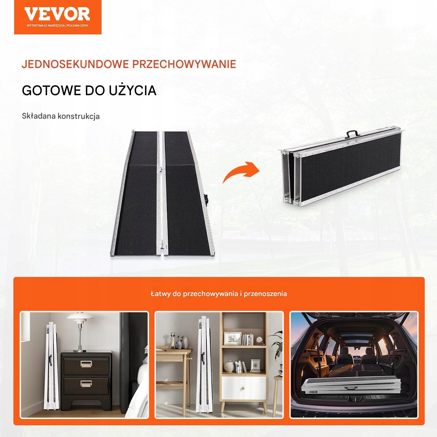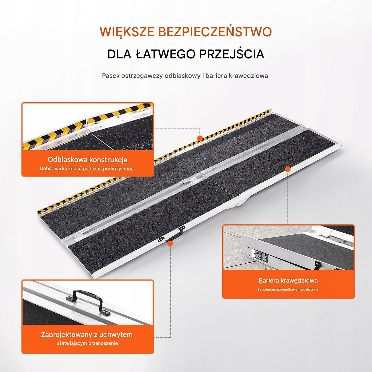 Портативный алюминиевый рамп является практическим решением для преодоления порогов и лестницы. Сплошная, не -скользящая поверхность и складывающаяся конструкция обеспечить безопасность и удобство использования