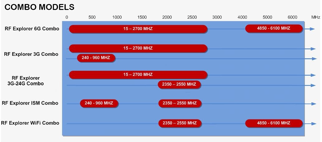 Сотовые сети GSM/GPRS/3G/4G, беспроводные микрофоны, передача видео, сети Wi-Fi, Bluetooth, ZigBee, диапазоны ISM и диапазоны любительского радио. - все эти частоты поддерживаются RF Explorer 3G Combo!