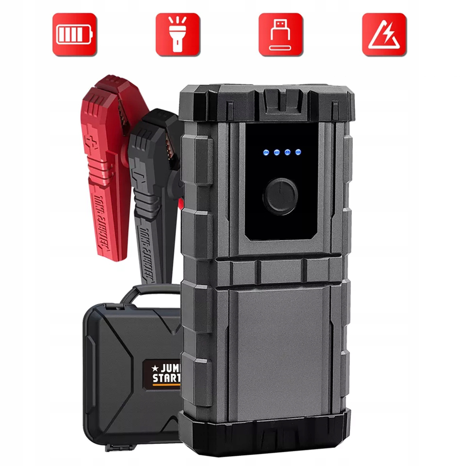 - ⚡ -благодаря пиковому току 1000A он может немедленно запустить полностью разряженную или низкомулажную батарею и подходит для транспортных средств с 4,0 -литровым двигателем бензина и дизельным двигателем 2,5 л.