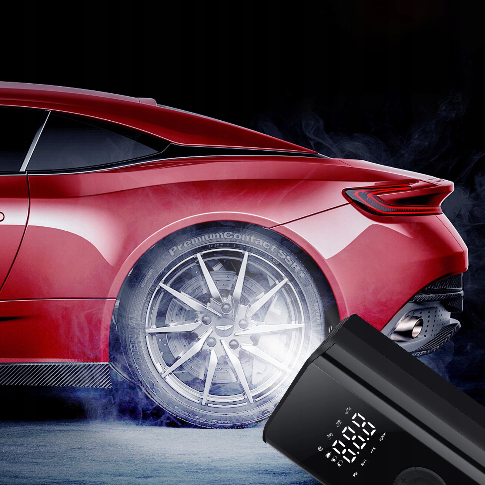 ✅Уличный и портативный. Благодаря компактным размерам (17,5 x 7,4 x 4,9 см) его легко транспортировать и брать с собой куда угодно. Сверху имеется светодиодный индикатор, который удобен при накачивании или замене шин в темноте.