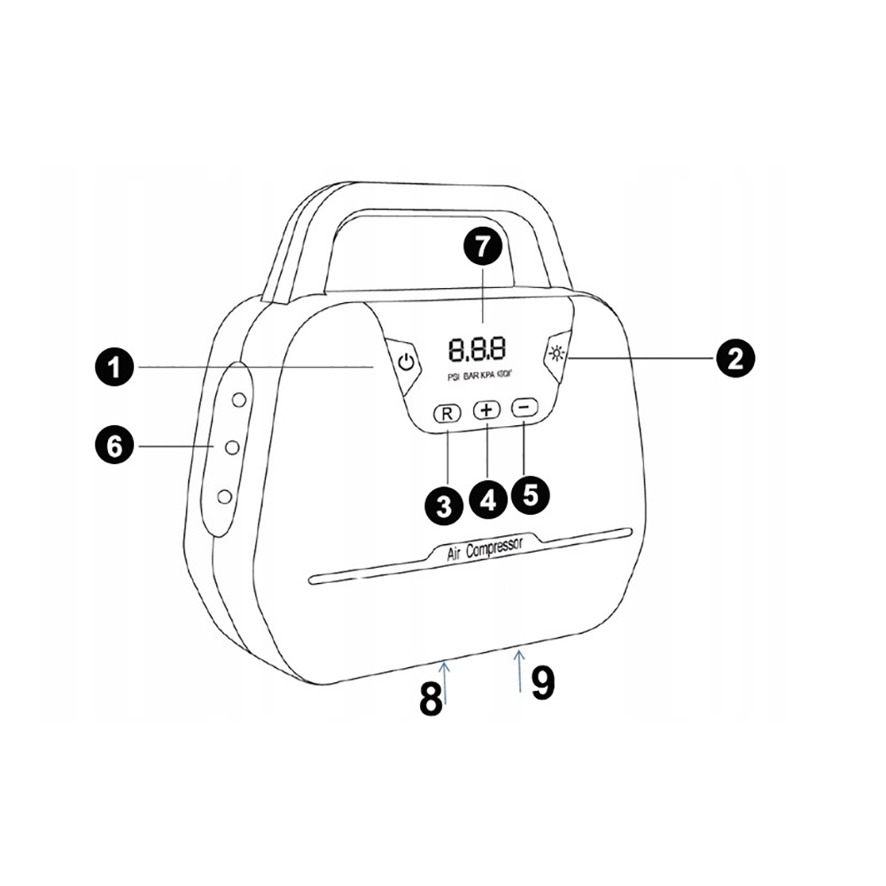 - Электронный манометр со светодиодным дисплеем - выключает компрессор при достижении заданного давления.