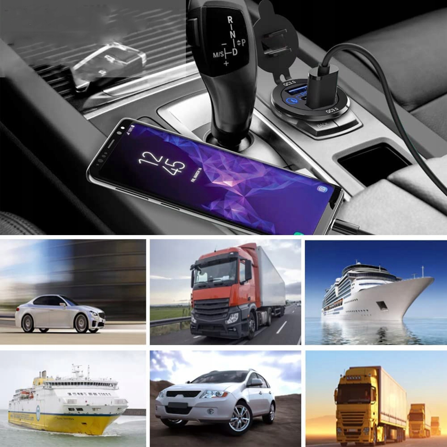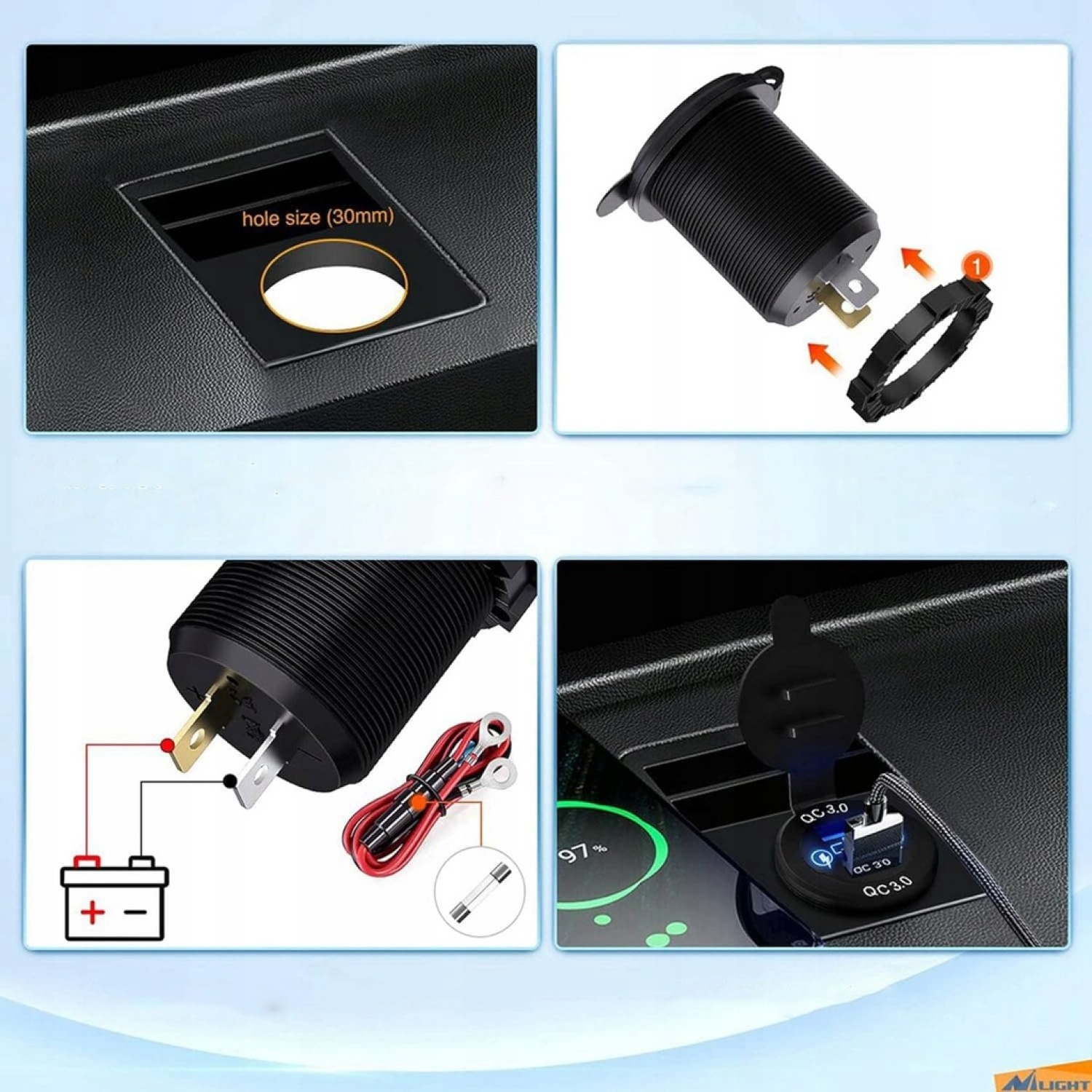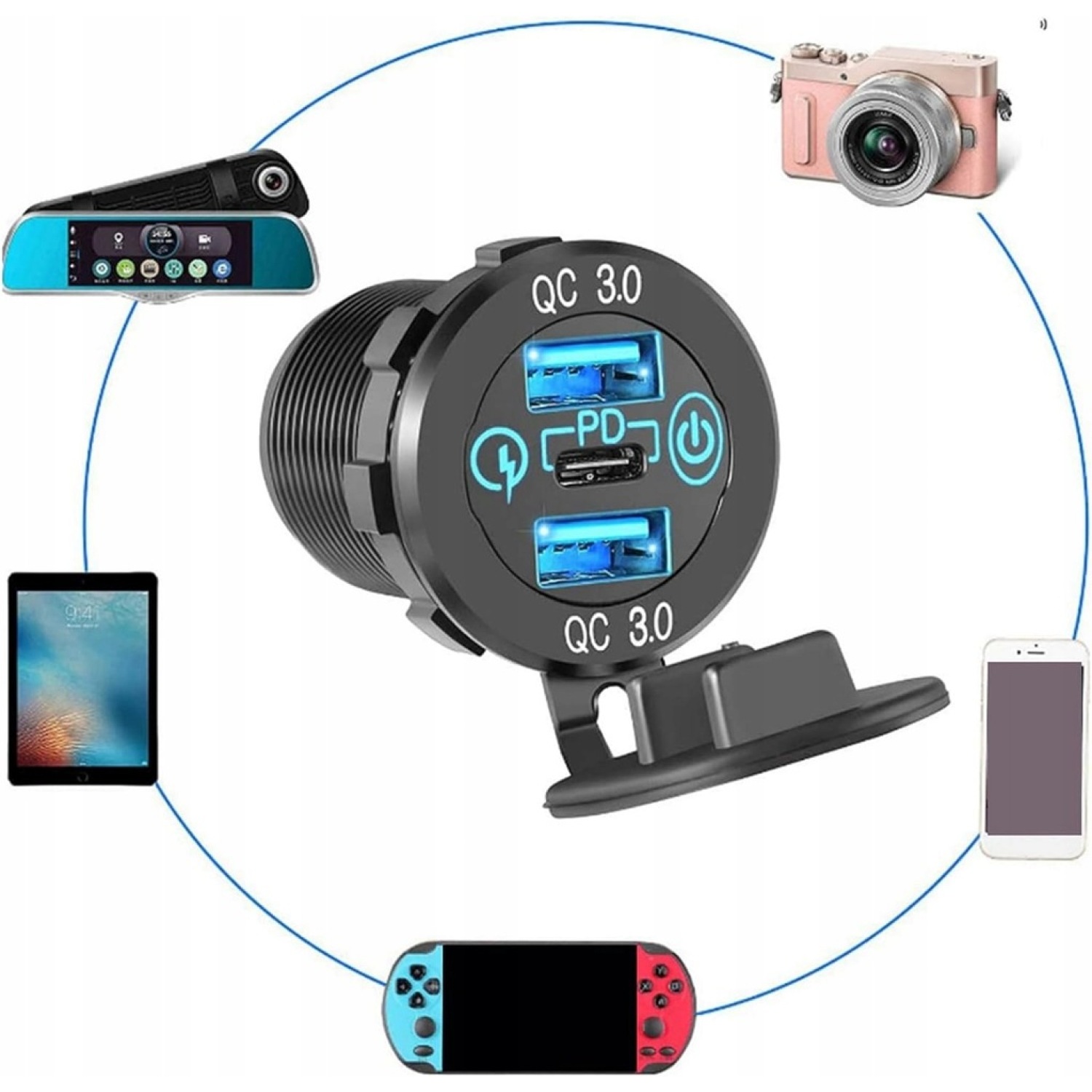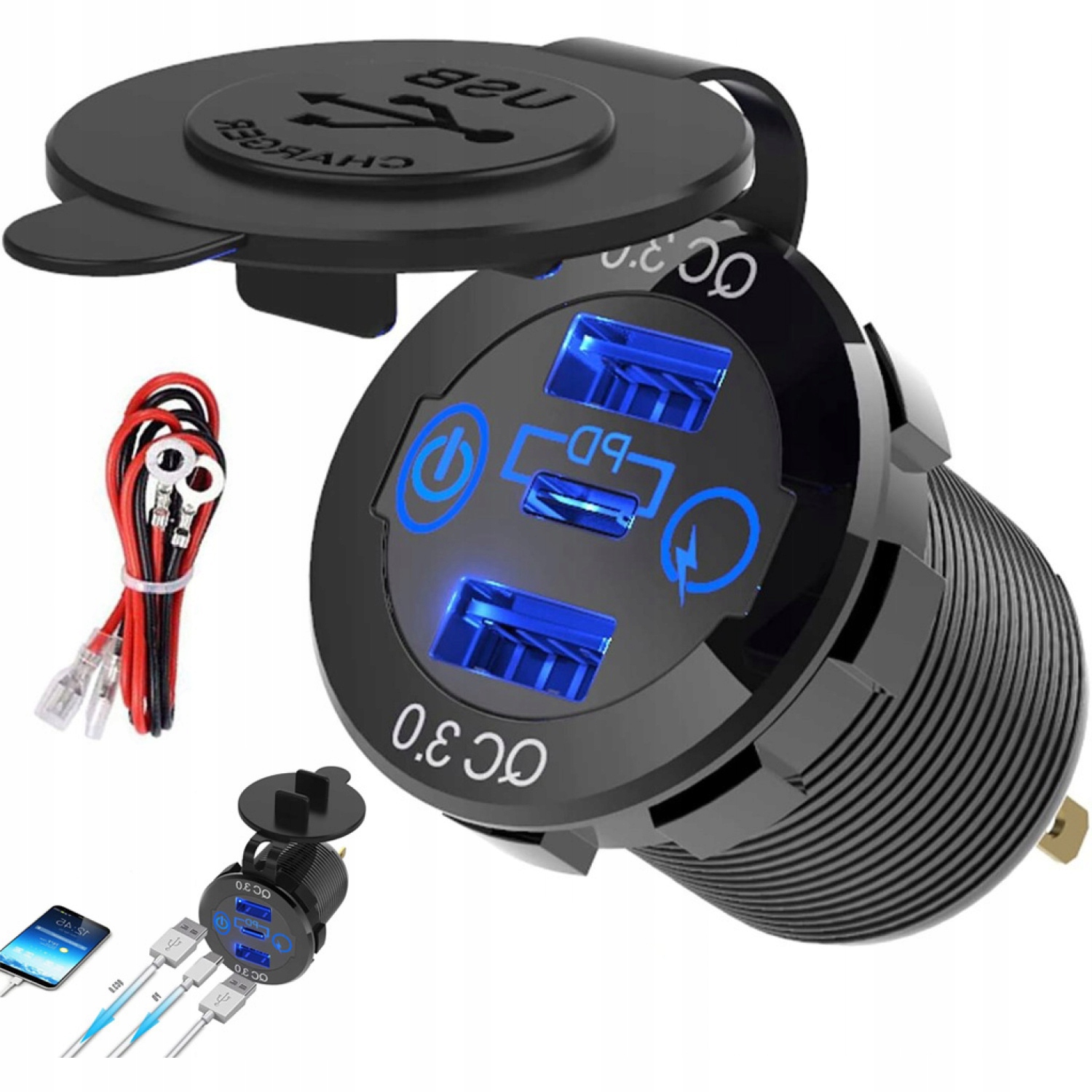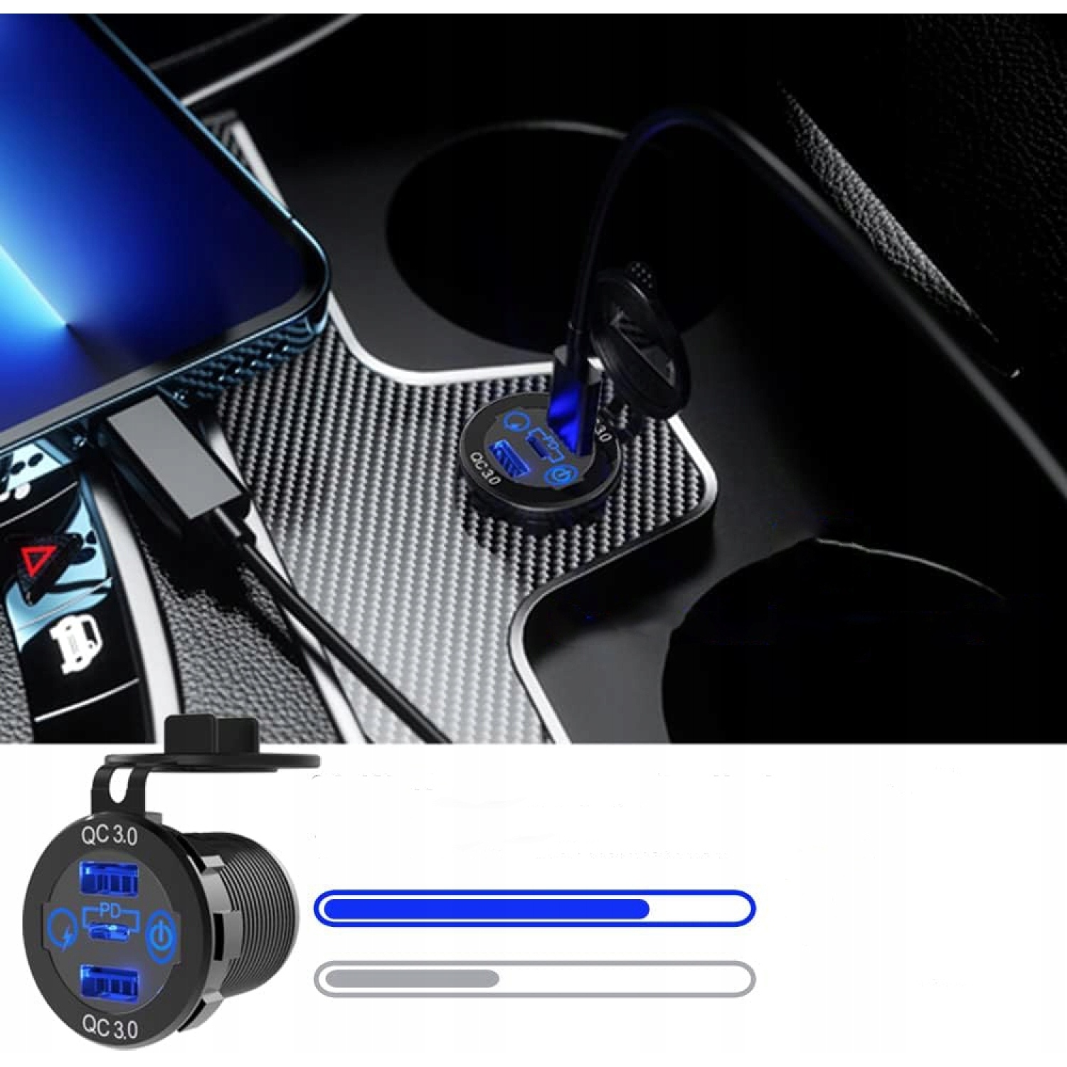 ПОРТАТИВНИЙ АВТОМОБІЛЬНИЙ ЗАРЯДНИЙ ПРИСТРІЙ USB ТИП C МОНТАЖНА РОЗЕТКА 2X QC 3.0 + PD