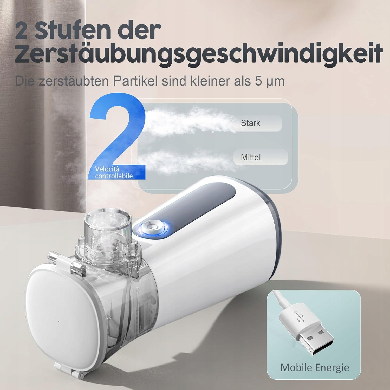- Высокоэффективное ингаляционное устройство: ингалятор для взрослых использует новую технологию ультразвукового распыления для распыления водорастворимых лекарств на мелкие частицы тумана размером менее 5 мкм и контролирует давление для распыления жидкости на мелкие аэрозоли. Препарат эффективно усваивается организмом и не разрушается. Убедитесь, что ингалятор полностью заряжен. Световой индикатор должен быть синим.