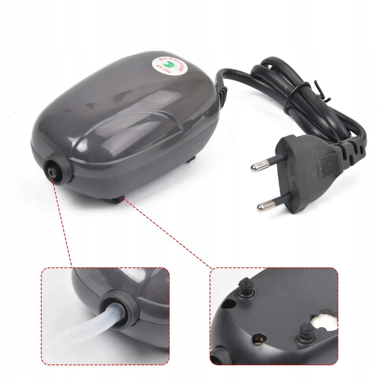 ПОРТАТИВНЫЙ БЕСШУМНЫЙ ВОЗДУШНЫЙ НАСОС ДЛЯ АЭРАТОРА АКВАРИУМА 3ВТ СО ШЛАНГОМ 2М, Производительность до 500 л/ч