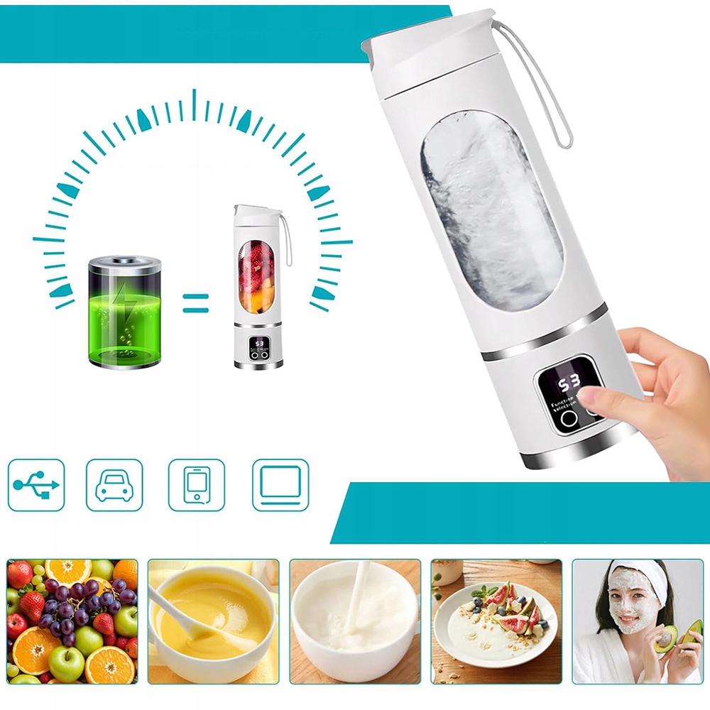 Mini Standing Mixer имеет встроенный аккумулятор 1300 мАч, он может быть заряжен с источником питания, ноутбука, мобильного зарядного устройства или порта зарядки автомобиля.