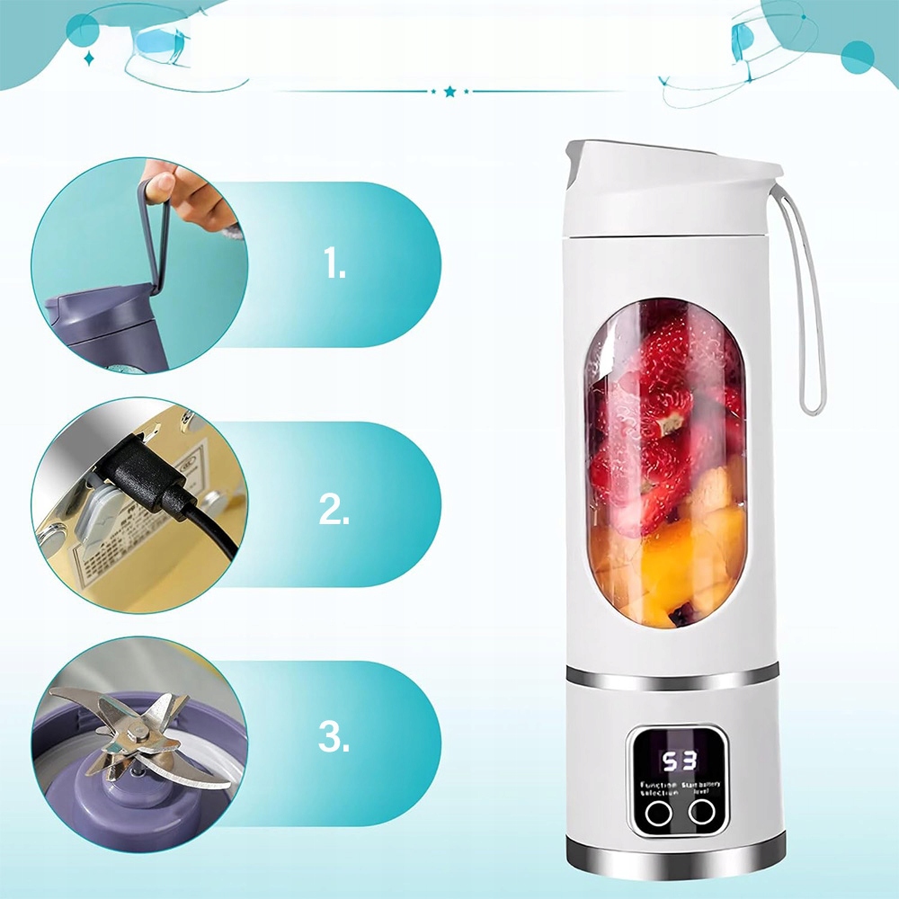 Этот блендер для коктейлей оснащен 10 острыми лезвиями из нержавеющей стали, которые могут быстро нарезать лед, фрукты и овощи и приготовлять питательные коктейли для молока и смузи с деликатным вкусом и без фильтрации, маленькие коктейли, фрукты, фрукты, эминевидные. Полем Примечание. Для лучшего эффекта вы можете встряхнуть и повернуть блендер после запуска.