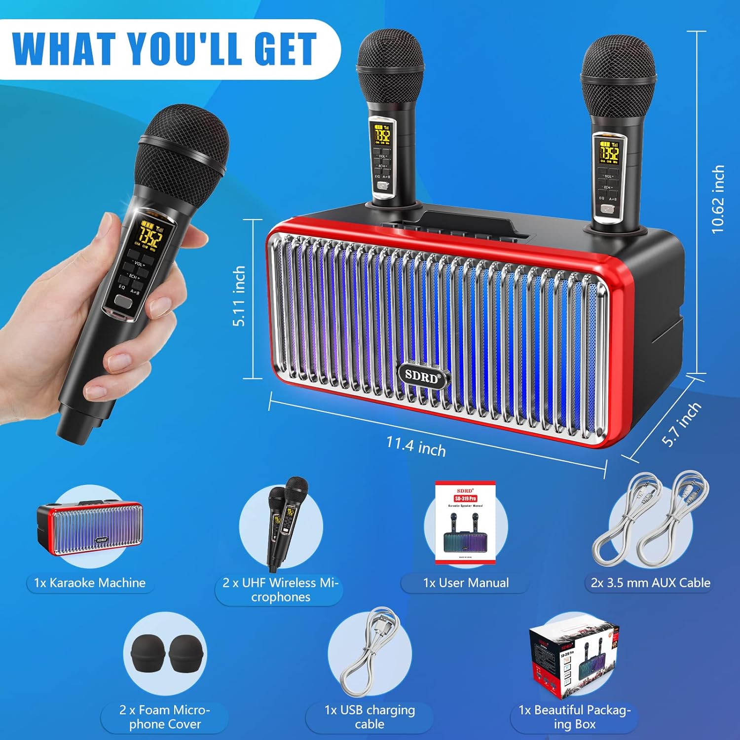 Портативний Bluetooth караоке DLARA з двома мікрофонами, світлодіодним підсвічуванням