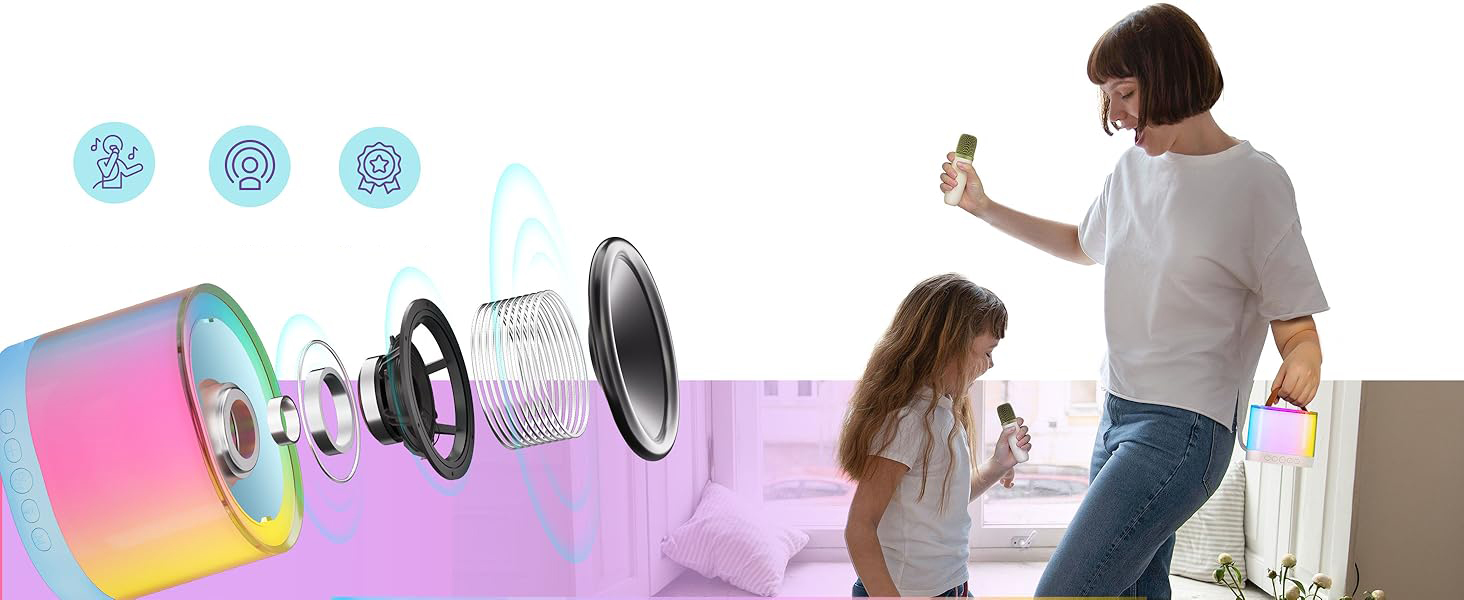 🌟Оснащенный двумя микрофонами, вы можете наслаждаться пением вместе с семьей и друзьями.