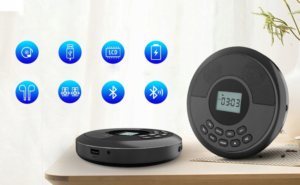 - Благодаря памяти воспроизведения этот проигрыватель аудио-CD продолжит воспроизведение с того места, на котором вы остановились. Подключите наушники к этому портативному проигрывателю компакт-дисков, чтобы слушать музыку конфиденциально и получить более захватывающий опыт.