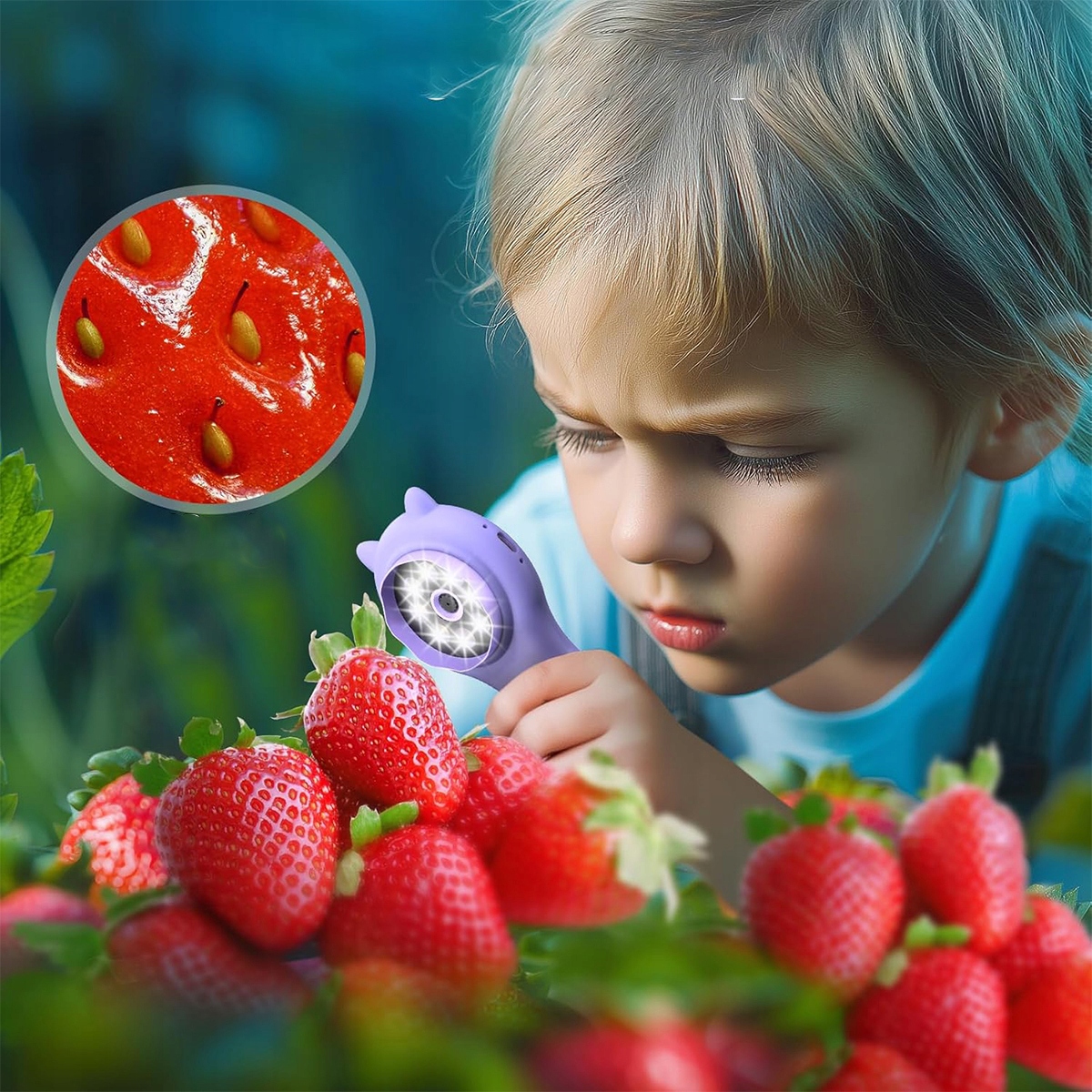 🔎Портативный карманный микроскоп: оснащен 2-дюймовым IPS-экраном высокого разрешения и лупой с круглой апертурой, а на задней панели расположены 8 регулируемых светодиодных фонарей в соответствии с размером руки вашего ребенка. В этой лупе используются как оптические, так и электронные методы визуализации, что позволяет детям исследовать микроскопический мир разными способами.