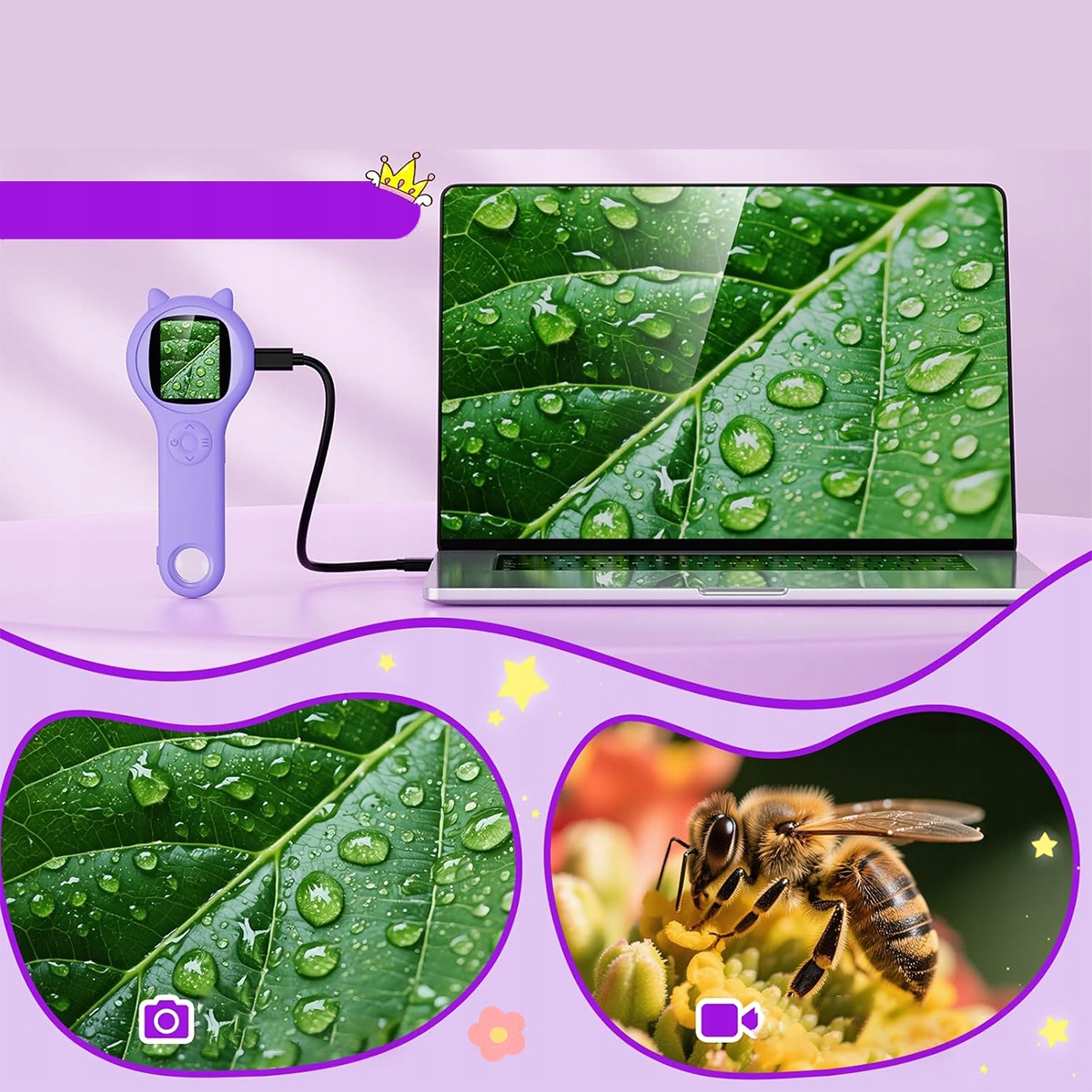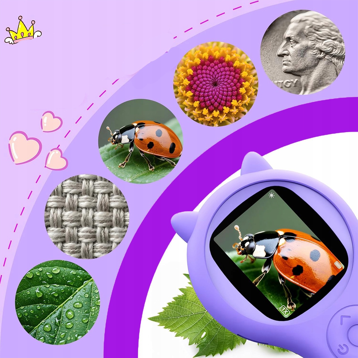 🔎Цифровой микроскоп для детей: этот микроскоп, оснащенный 200-кратным увеличением и кнопкой 4-кратного масштабирования, обеспечивает исключительную четкость изображения, позволяя детям внимательно рассматривать пятна на объекте. божьи коровки, крылья пчел, жилки растений, замысловатые узоры на монетах и волокнах ткани, начиная захватывающее путешествие по микроскопическим исследованиям.