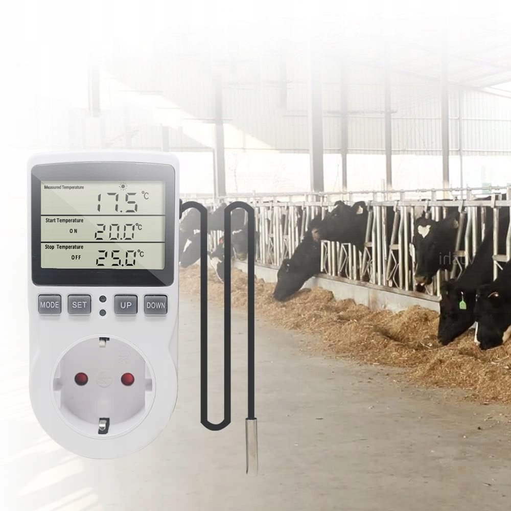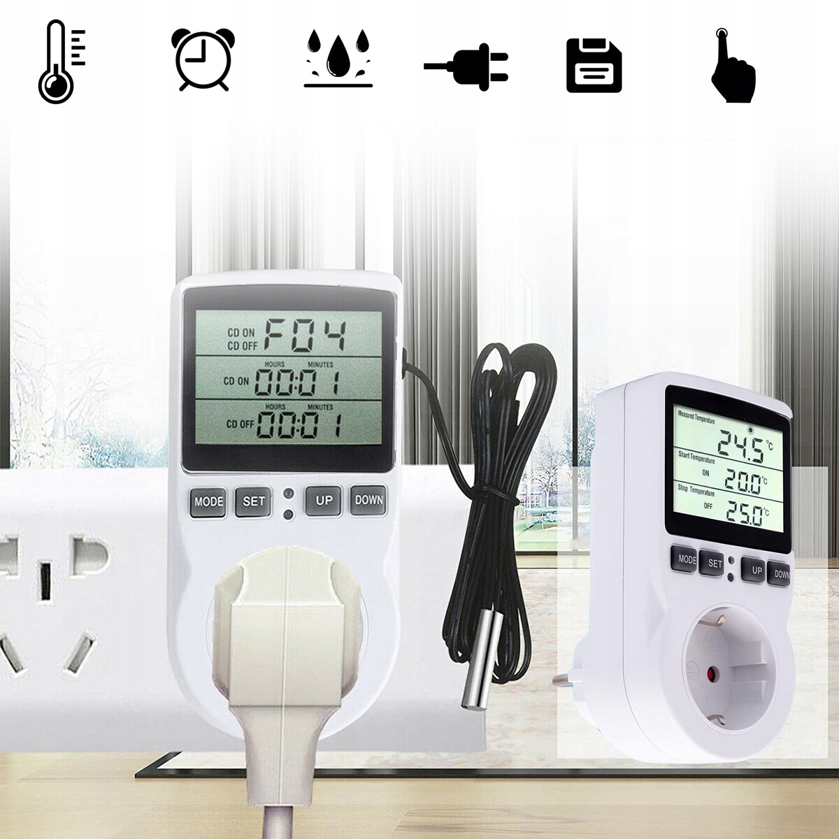 ПОРТАТИВНИЙ ЦИФРОВИЙ ТЕРМОСТАТ З РОЗЕТКОЮ 230 В, РЕГУЛЯТОР ТЕМПЕРАТУРИ, БІЛИЙ