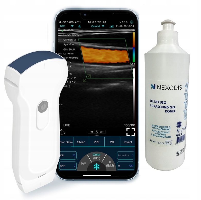 - Позволяет добиться лучшей проводимости ультразвука, предотвращая помехи, вызванные потоком воздуха между кожей и датчиком.