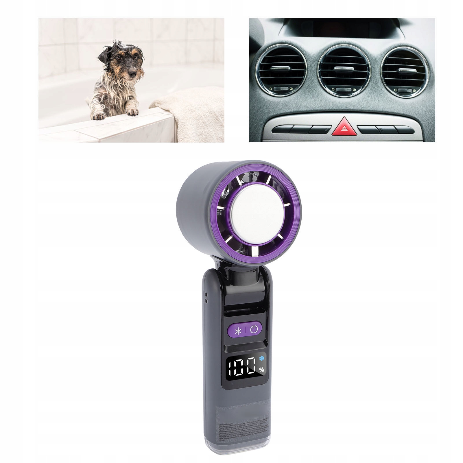 Как использовать: нажмите кнопку питания, чтобы включить устройство. Один щелчок мыши позволяет отрегулировать скорость вентилятора на 5 уровнях. Нажмите и удерживайте кнопку пакета со льдом, чтобы активировать режим пакета со льдом, на что указывает символ снежного пятна на экране дисплея. Чтобы активировать режим фонарика, дважды нажмите кнопку питания.