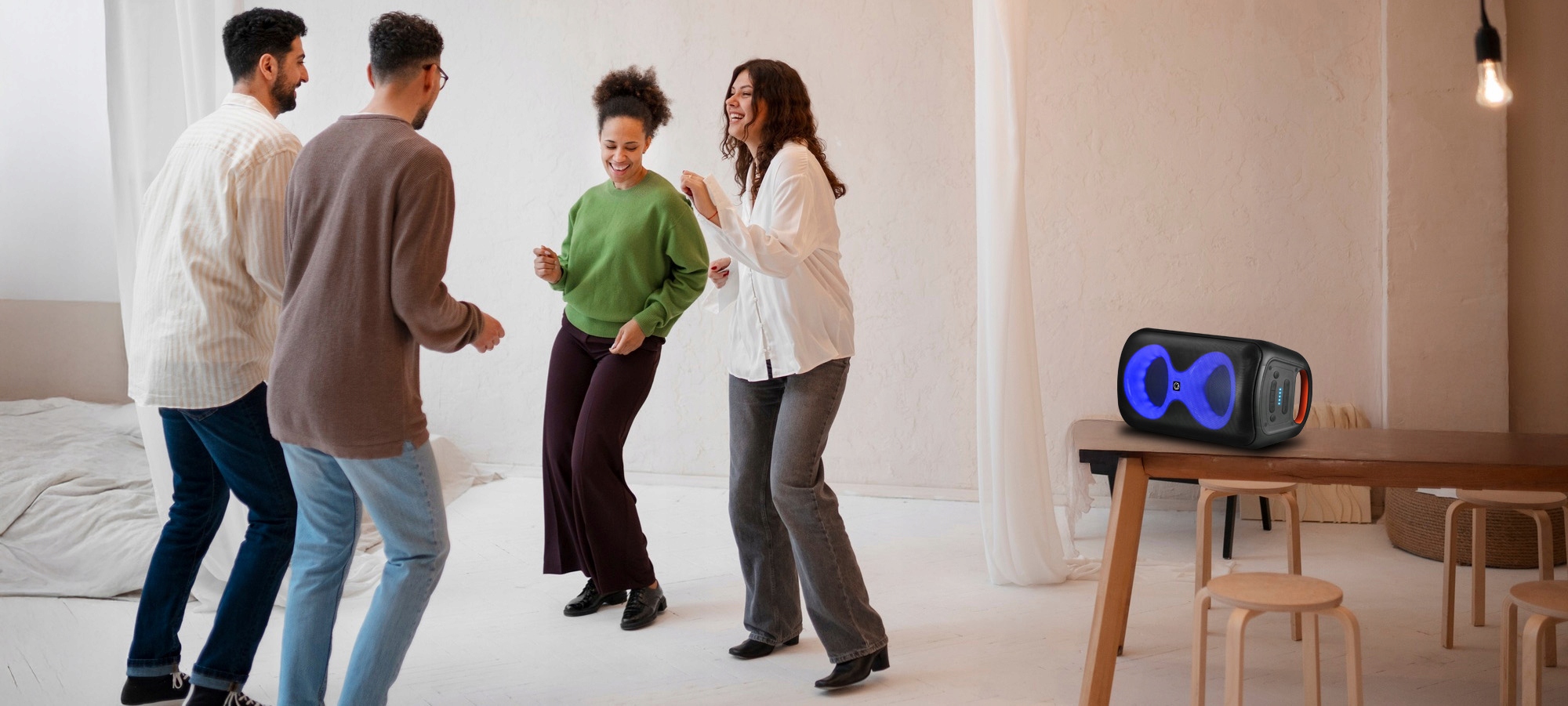 ☑ 100w мощность и динамический бас - b> обеспечивают отчетливый, громкий звук, идеальный для событий, открытого воздуха или домашней игры.