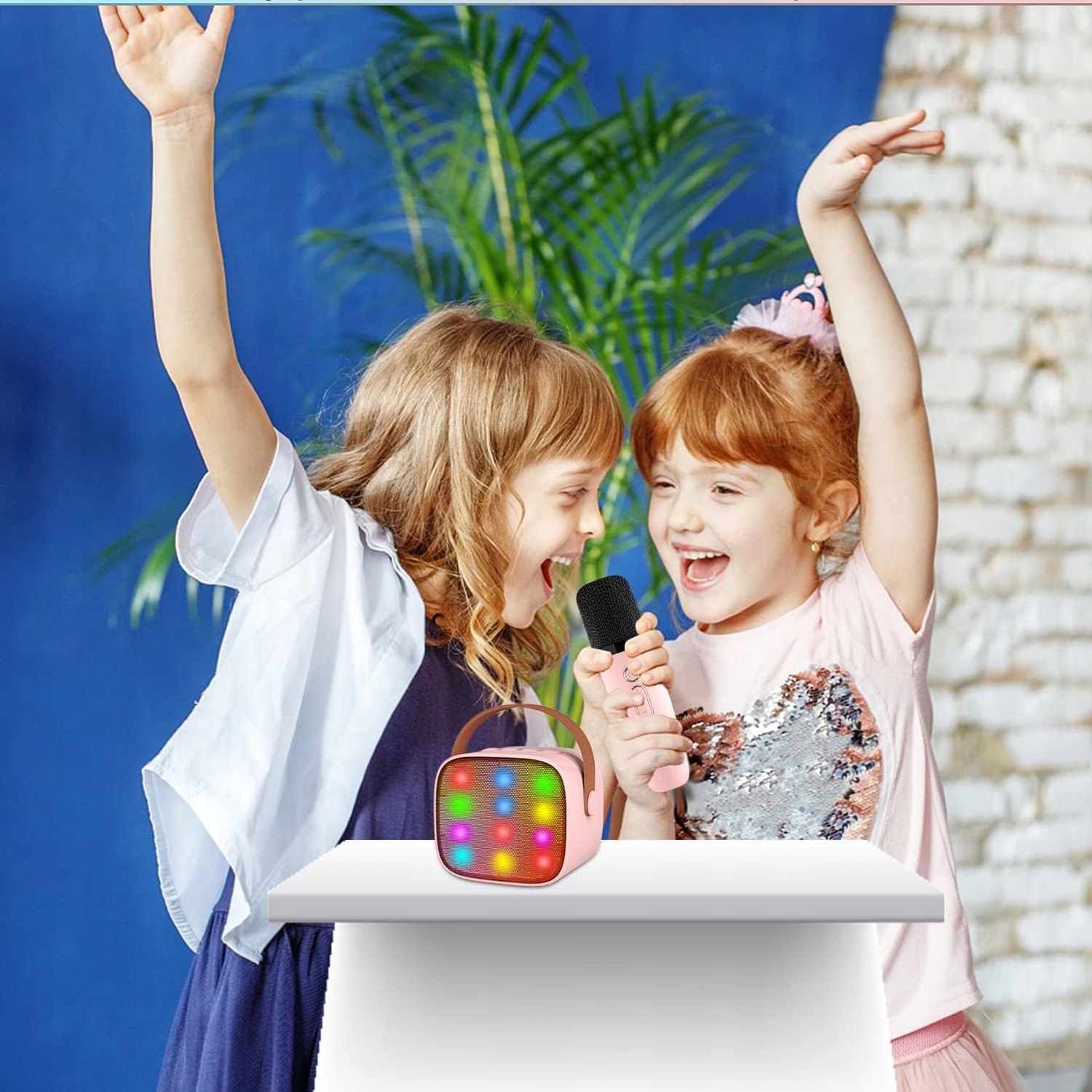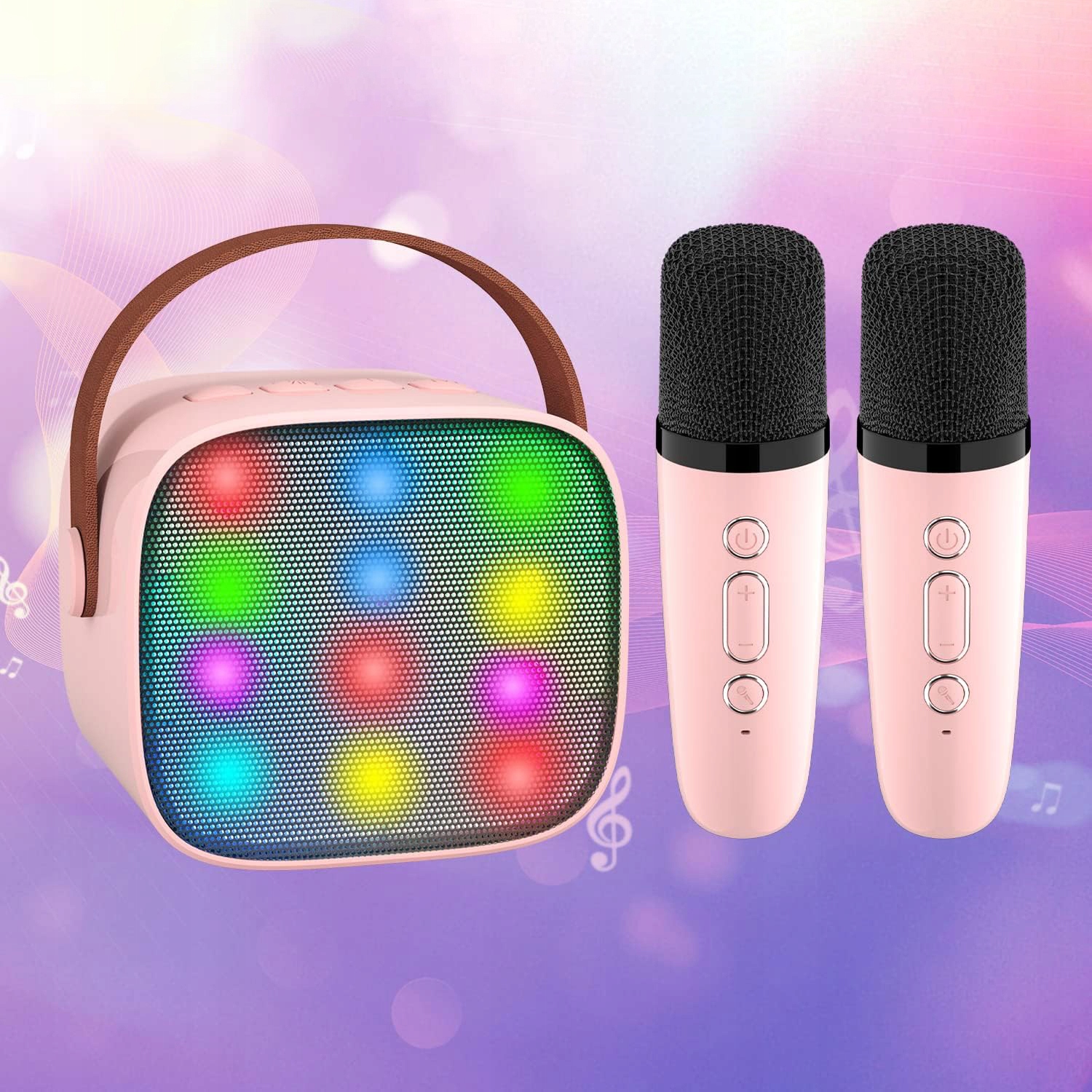 - Устройство караоке Bluetooth с 2 беспроводными микрофонами, автоматически подключается к динамику, когда оно включено, его диапазон до 10 м может контролировать человеческий голос/эхо/громкость Отдельно музыка. Усовершенствованный цифровой процессор сигнал, который делает звук более ясным и избегает раздражающей обратной связи микрофона. Светодиодные огни бьют ритм музыки, дети будут любить танцевальные огни, которые выпускаются со звуком Для KTV, мероприятий, встреч, на открытом воздухе. Поддержите память TF с помощью MP3 -песен, пение, пение, воспроизводить музыку, слушать песни, как вы хотите