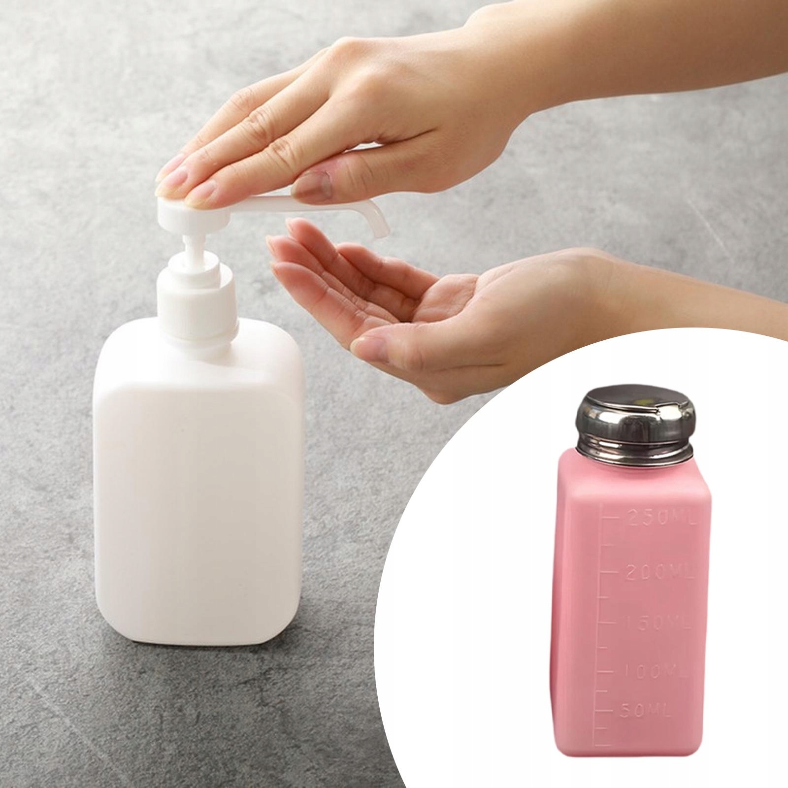 [Портативный]: Маленькая бутылочка с помпой, проста в использовании и переноске, бутылка имеет четкие шкалы, что удобно для контроля количества жидкого растворителя.