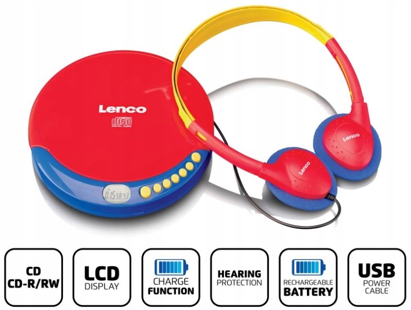 ПОРТАТИВНИЙ ДИТЯЧИЙ CD-ПЛЕЄР LENCO + ОБМЕЖЕННЯ ГУЧНОСТІ НАВУШНИКИ