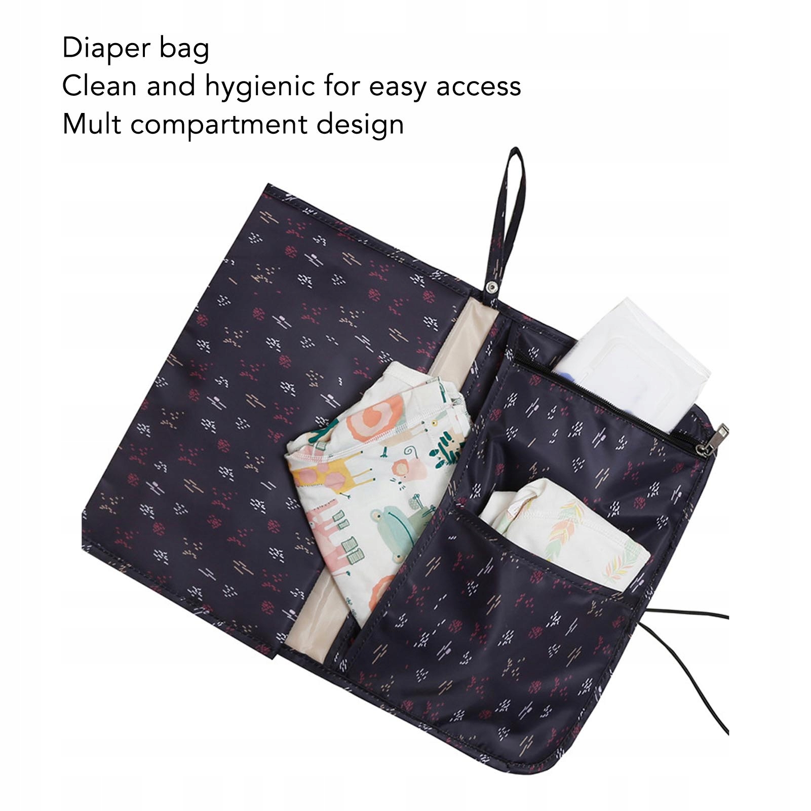 4. Портативный: портативный коврик для прокрутки указан, когда он не используется, и имеет много функций: коврик для подгузников, мешок с подгузником и сумка для хранения в одном.