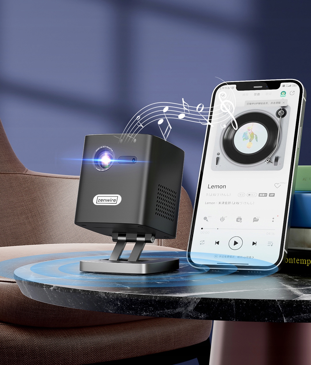 - Сам проектор также может стать беспроводным динамиком, и вы можете воспроизводить звук с телефона.