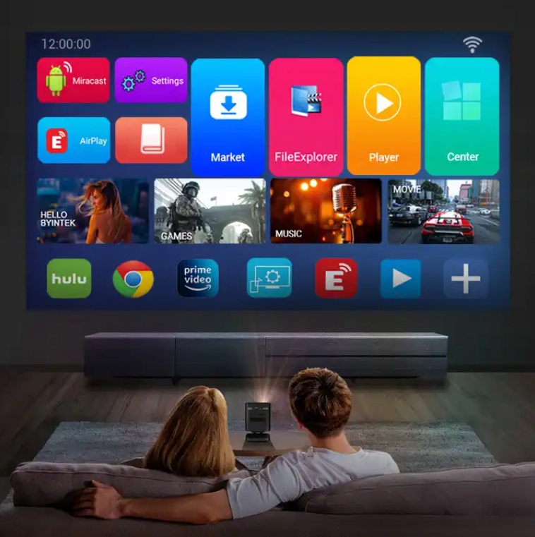 - Яркость 5400 LM/180 ANSI, динамический контраст 12000: 1, размер экрана до 150 дюймов. Кора A53 и 2 ГБ оперативной памяти, 32 ГБ памяти EMMC позволяют комфортно, быстрая, стабильная операция,