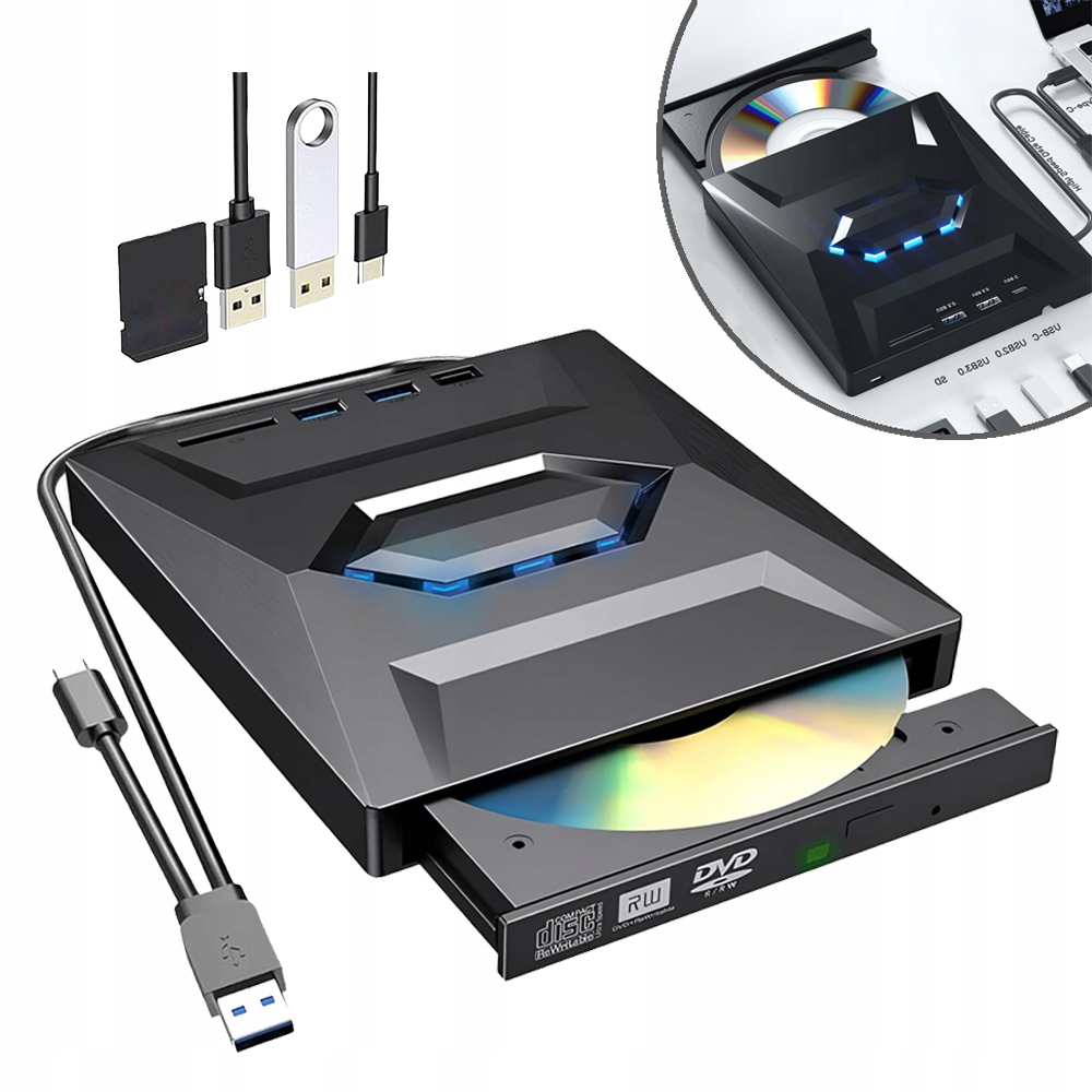 Наш портативный DVD-плеер может использоваться в качестве чтения CD/DVD, регистратора, 4-портового концентратора USB 3.0 Hub, считывателя SD-карт и считывателя TF-карт. Совместим с жесткими дисками USB, мышами и клавиатуры Wired/Wireless, Computer Cooler и другими аксессуарами USB -компьютера