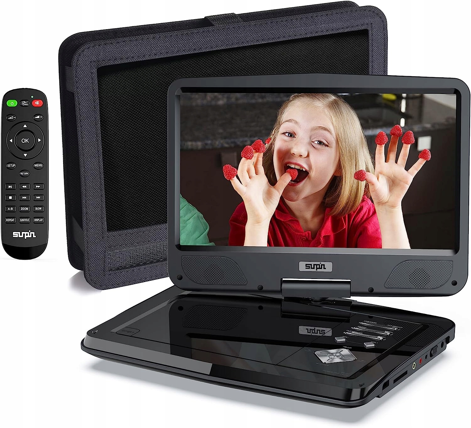 - В портативном DVD-плеере SUPIN PD101 используется экран для защиты глаз нового поколения, обеспечивающий более реалистичное качество просмотра. Портативный DVD-плеер поддерживает двойной разъем для наушников. В комплект входят AV-кабель и пульт дистанционного управления, а также держатель на автомобильном подголовнике.