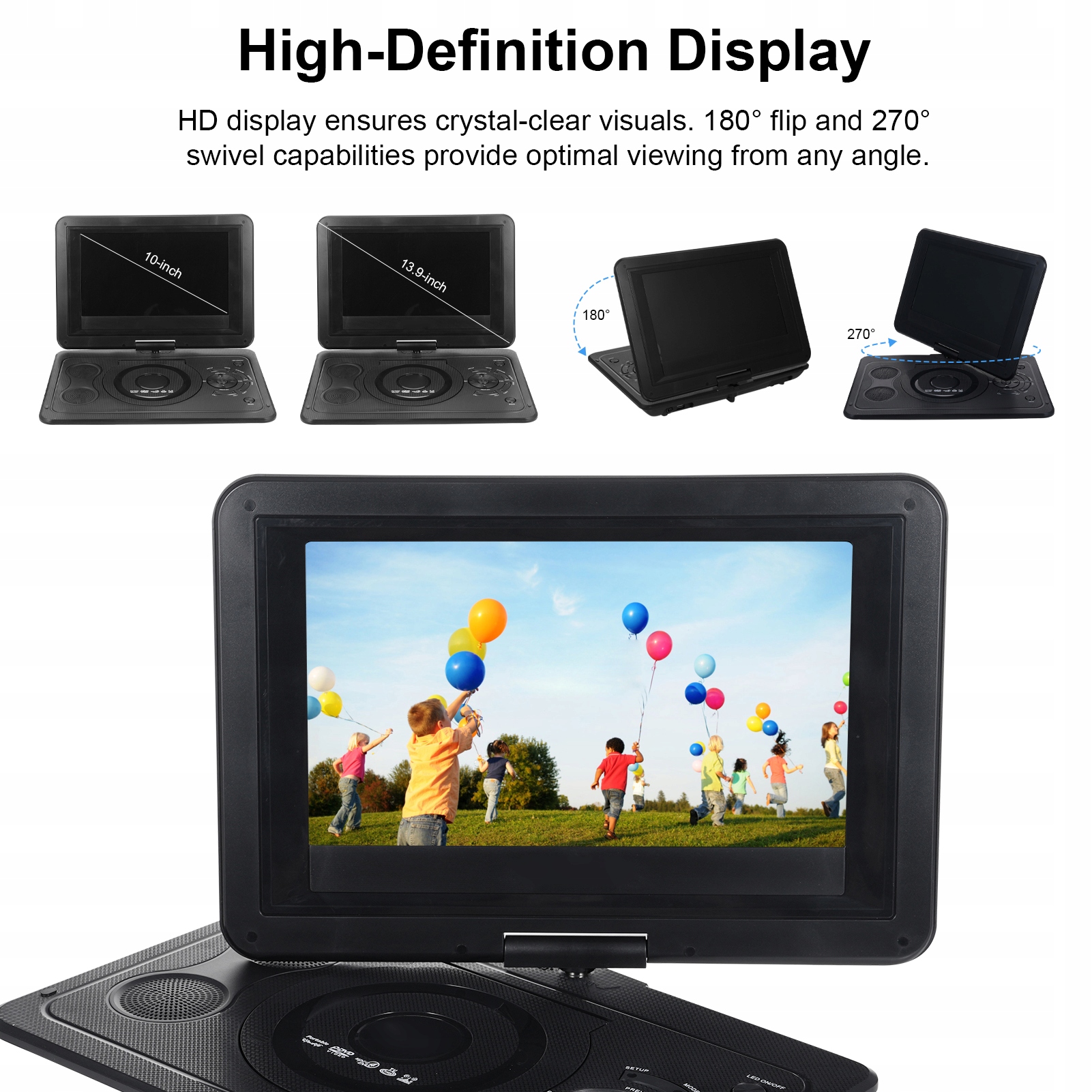 Портативный 13,9-дюймовый DVD-плеер с экраном HD IJ