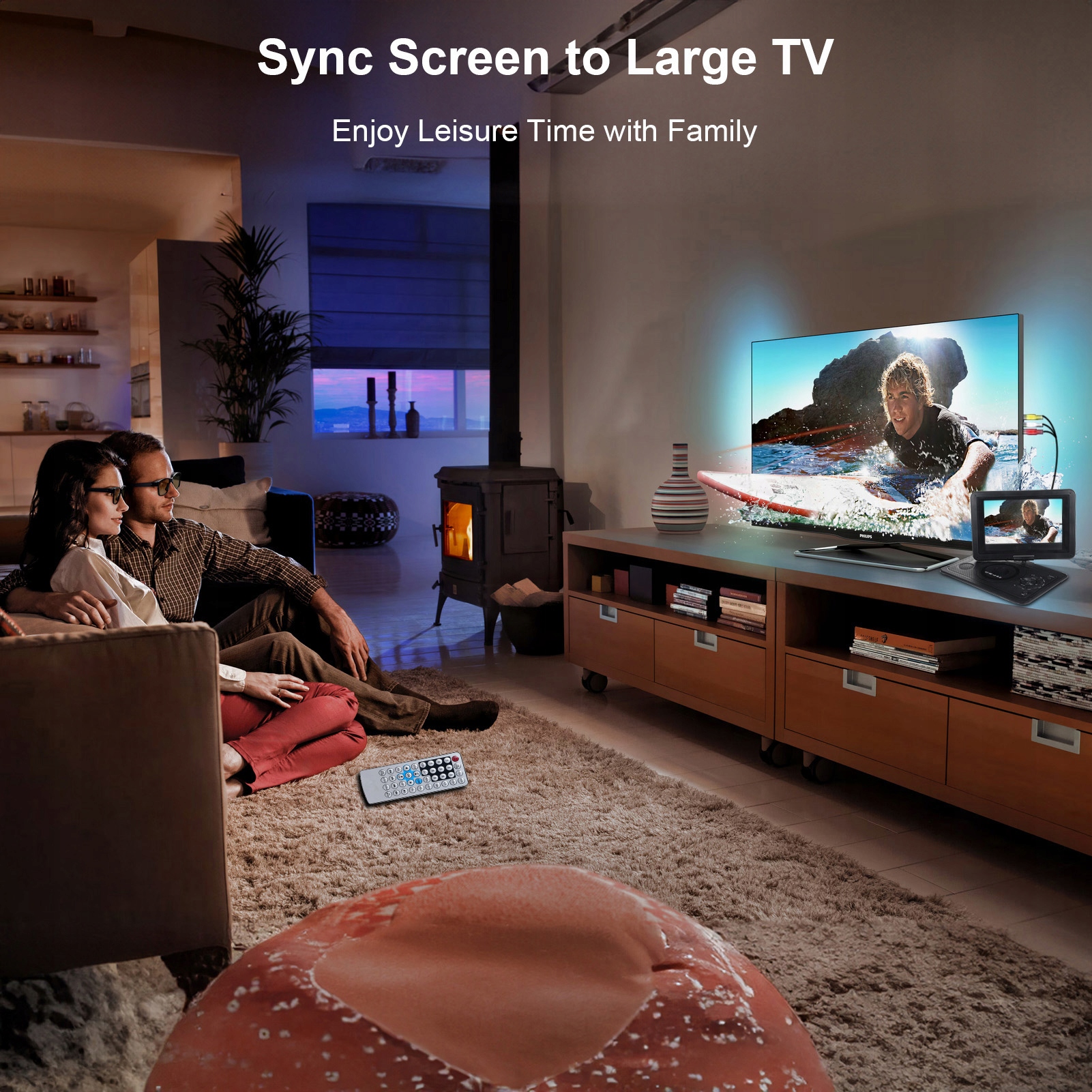 5. Портативная перезаряжаемая батарея: встроенная перезаряжаемая батарея емкостью 1500 мАч обеспечивает до 2 часов непрерывного воспроизведения, что идеально подходит для развлечений на свежем воздухе. В комплект входит автомобильный адаптер, который позволяет удобно использовать его в транспортных средствах и гарантирует, что развлечение никогда не будет прерываться.