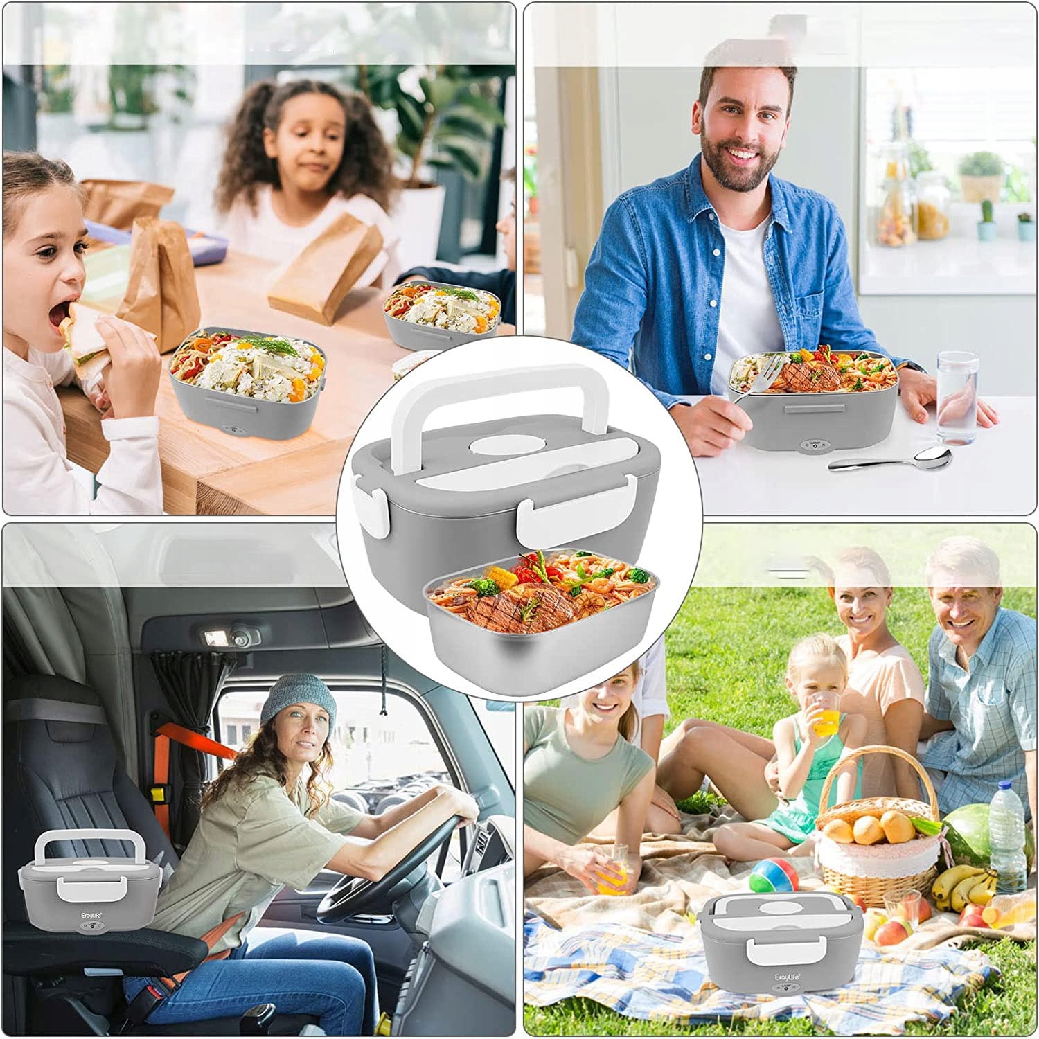 🍱-форма, герметичное герметичное кольцо и усиленное покрытие P> 🍱 --- Электрический обеденный контейнер оснащен съемным контейнером из нержавеющей стали 304 с емкостью 1,5 л, что облегчает очистку. Стальная вилка